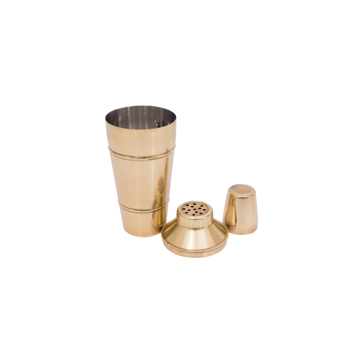 Catalog Name: 3-1/2" Round x 10"H 24 oz. Stainless Steel Cocktail Shaker, Brass Finish
