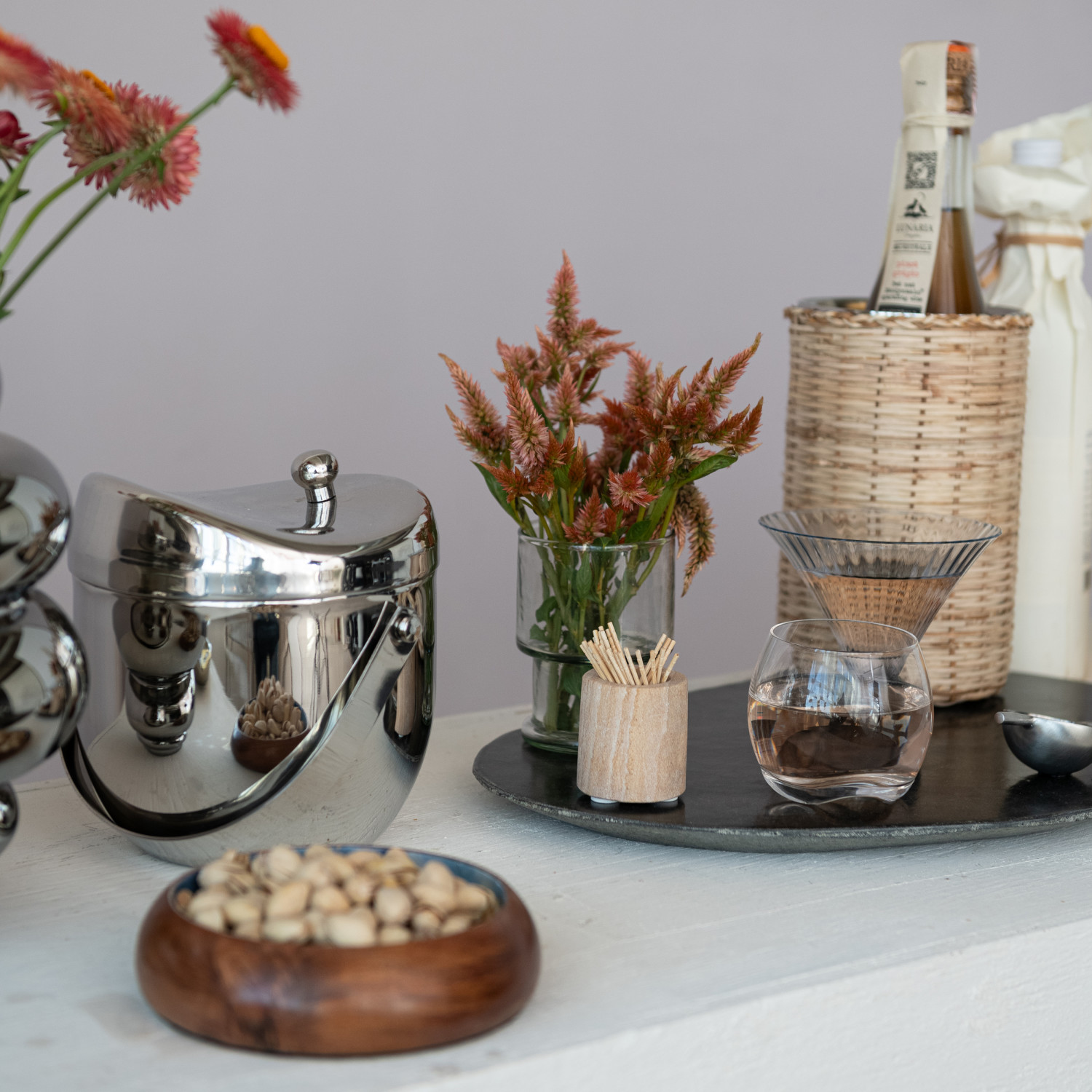 1 Quart Stainless Steel Double-Wall Ice Bucket with Handle & Lid