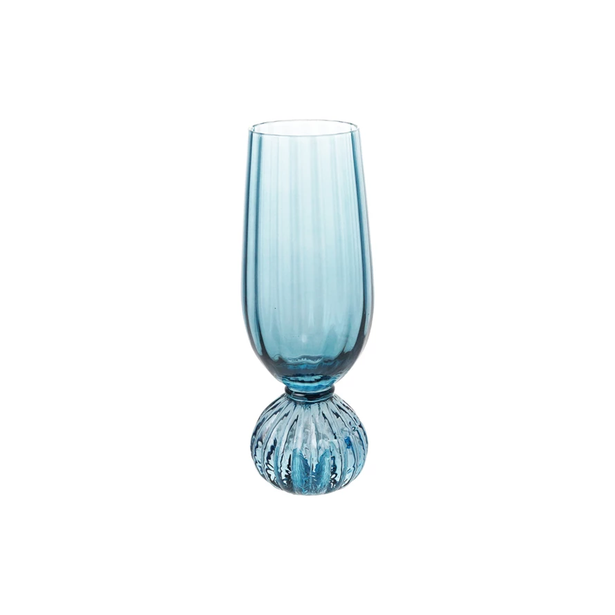 Catalog Name: 2-1/2" Round x 6-3/4"H 8 oz. Pleated Footed Champagne Glass, Blue