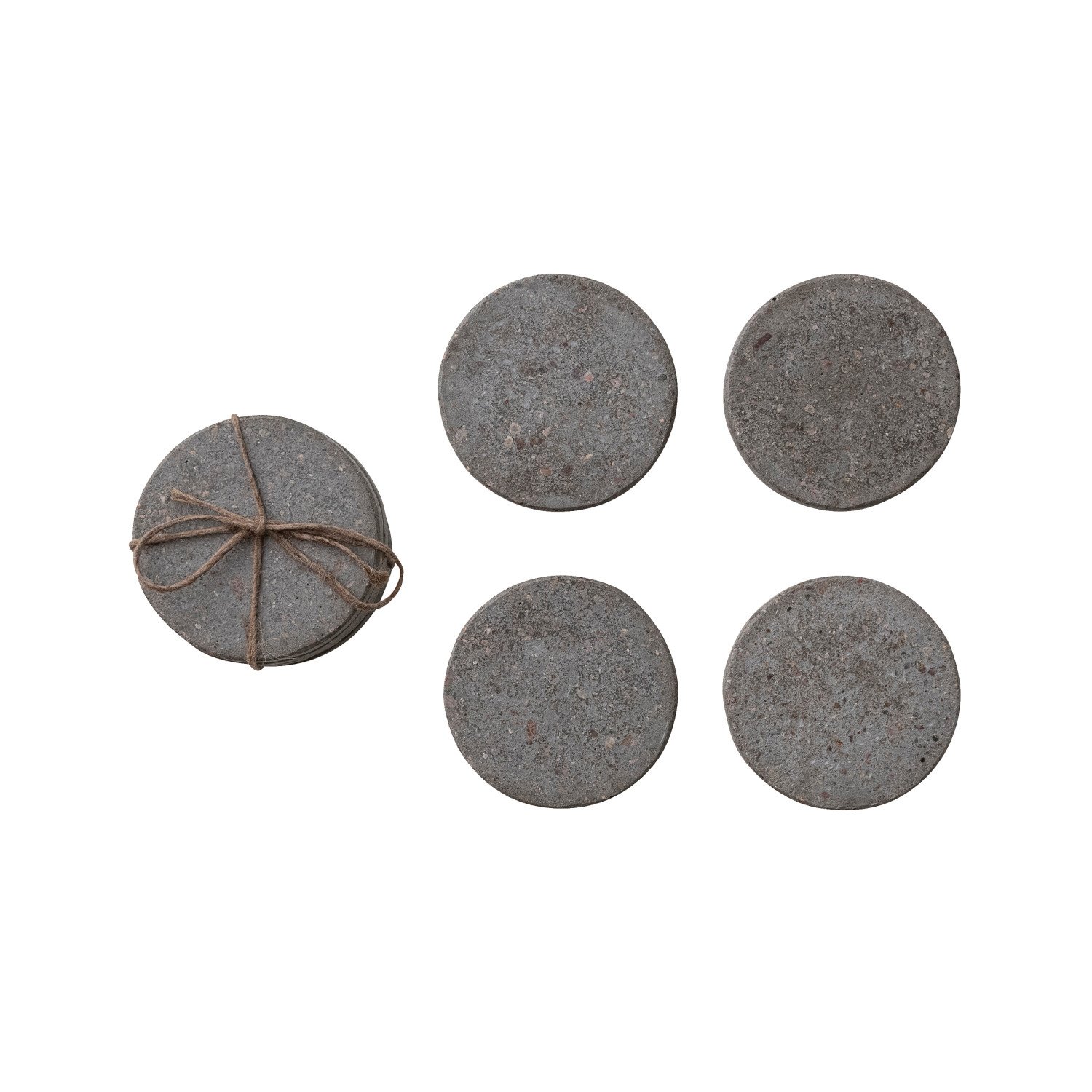 Catalog Name: 4" Round Concrete Coasters, Natural, Set of 4 Tied w/ Jute