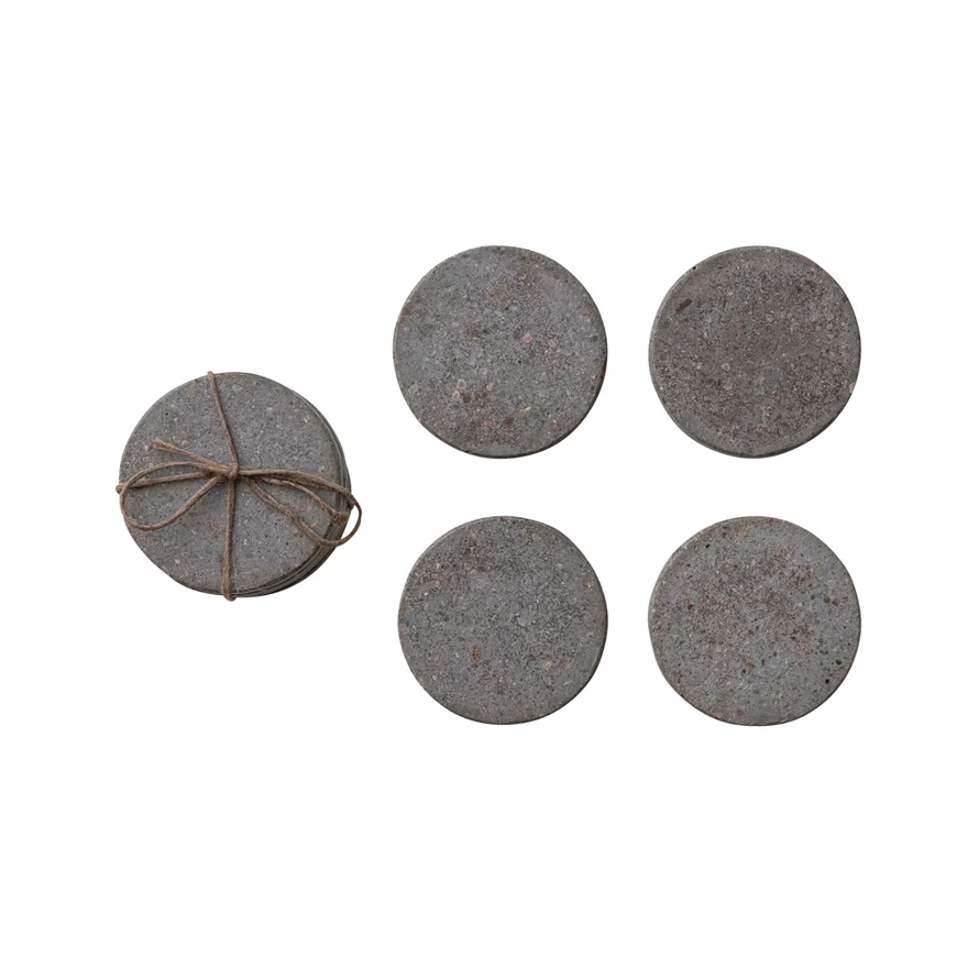 Concrete Coasters, Natural, Set of 4 Tied with Jute