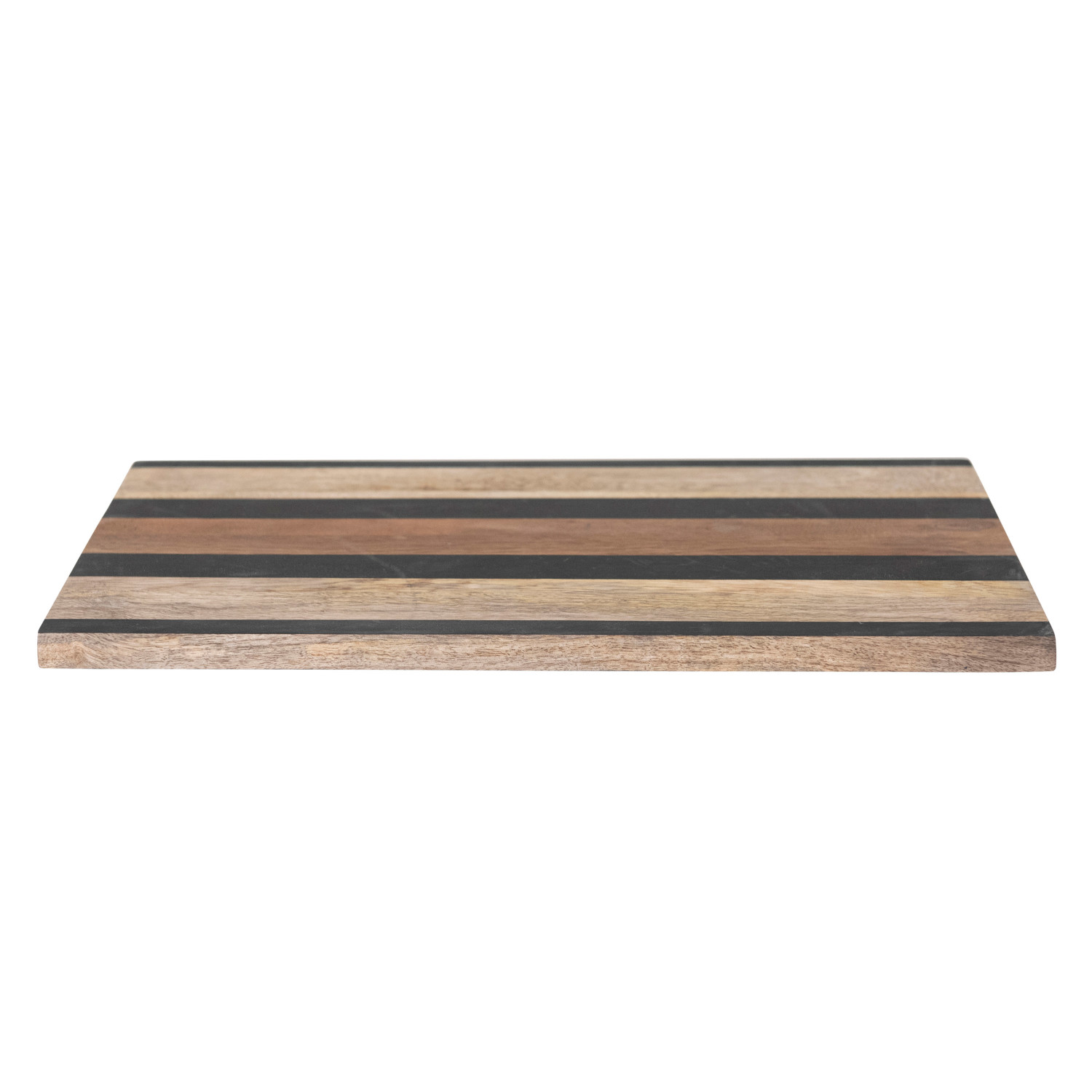 Catalog Name: 16-3/4"L x 12"W Mango Wood Striped Cheese/Serving Board, Natural & Black