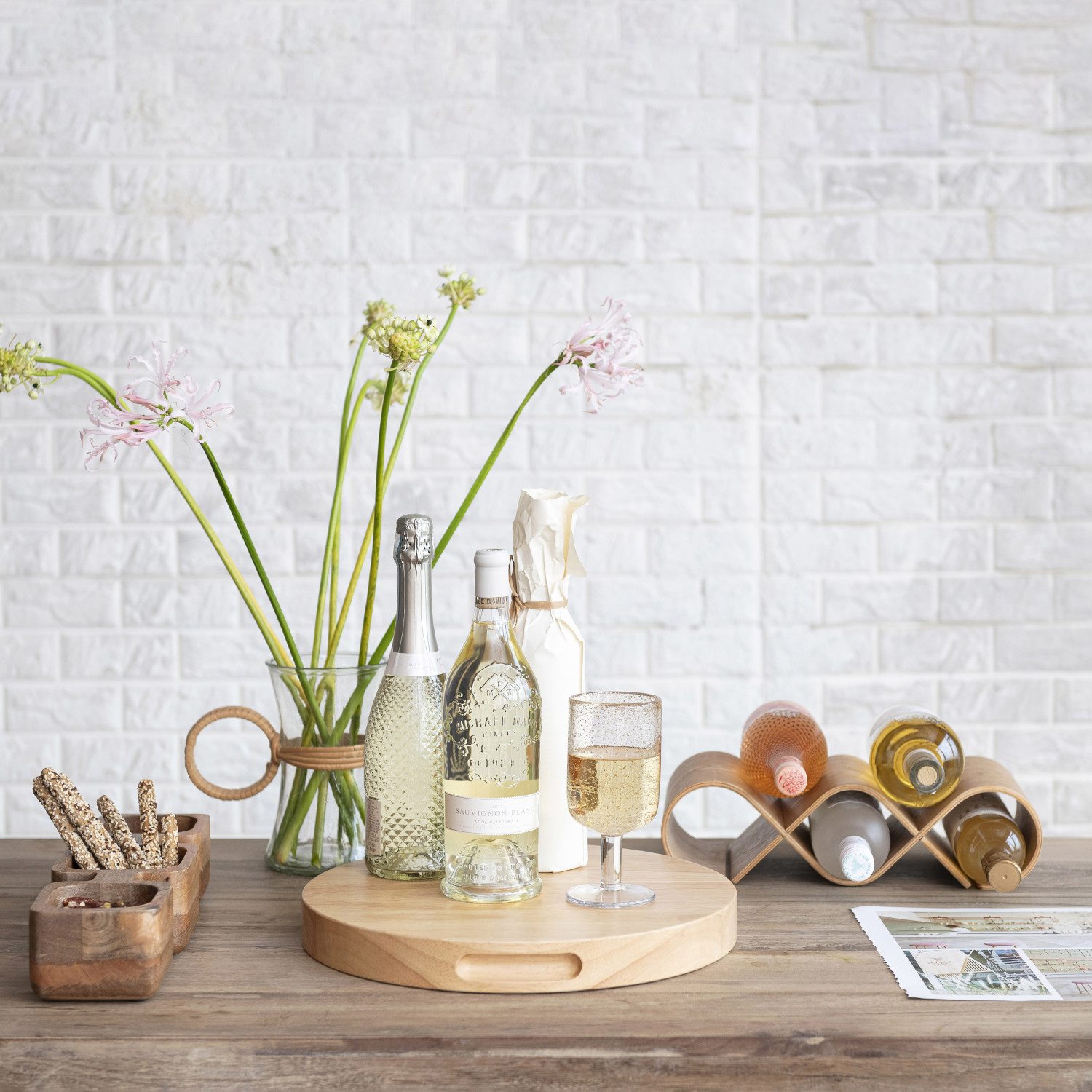 This natural rubberwood cheese/cutting board with handles is a practical and stylish way to serve snacks. Its round, sturdy design adds warmth and simplicity to the space. Made from rubberwood, a renewable and eco-friendly material, the board has a smooth, hard surface that resists stains, odors, and warping. It also protects knives from dulling. The board has two handles for easy carrying and serving, and can be hung on the wall for storage. It can be used as a cheese board, cutting board, serving tray, or decorative accent. It can match various styles, such as Scandinavian, boho, global, modern, or French country. The board is hand washable and should be dried thoroughly after each use. It's a perfect gift for those who love cheese and wood.