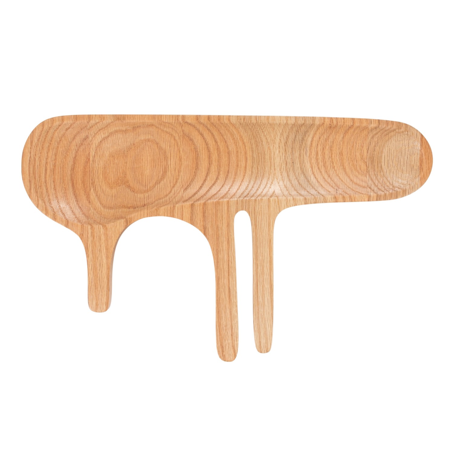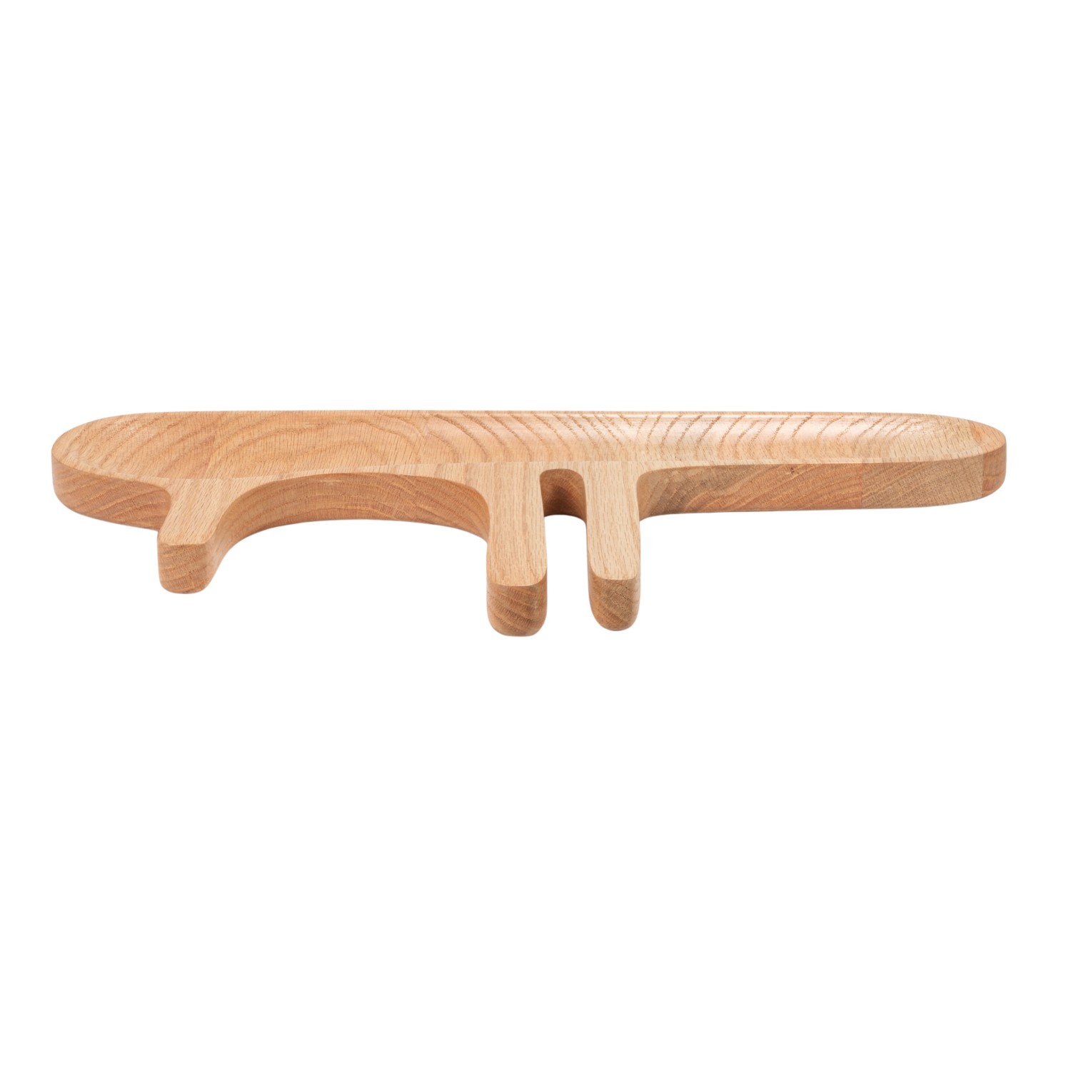 Oak Wood Abstract Shaped Serving Dish with Handles, Natural