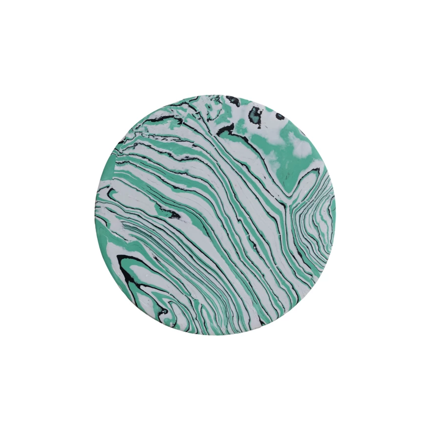 Catalog Name: 8" Round Recycled Stone & Resin Cheese/Serving Board, Marbled Multi Color (Each One Will Vary)