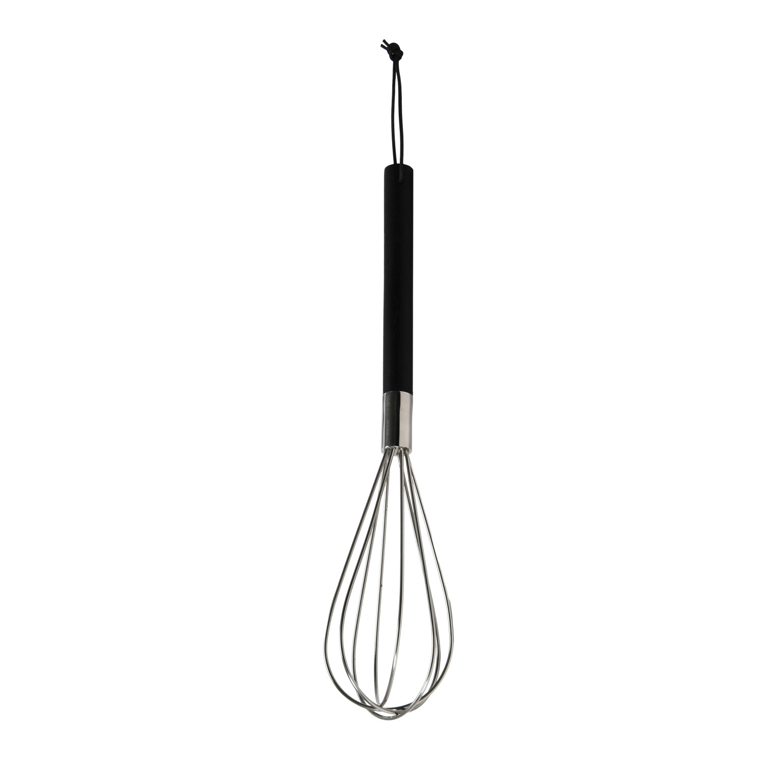 Catalog Name: 11-1/4"L x 2-1/4"W Stainless Steel Whisk w/ Mango Wood Handle & Leather Tie, Black