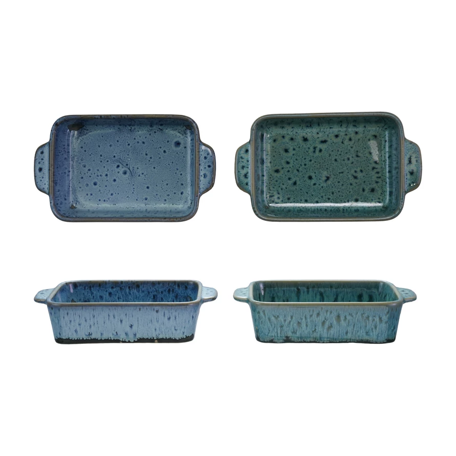 Catalog Name: 8-1/4"L x 4-3/4"W x 1-3/4"H 2-1/2 Cup Stoneware Baker, Reactive Glaze, 2 Colors (Each One Will Vary)