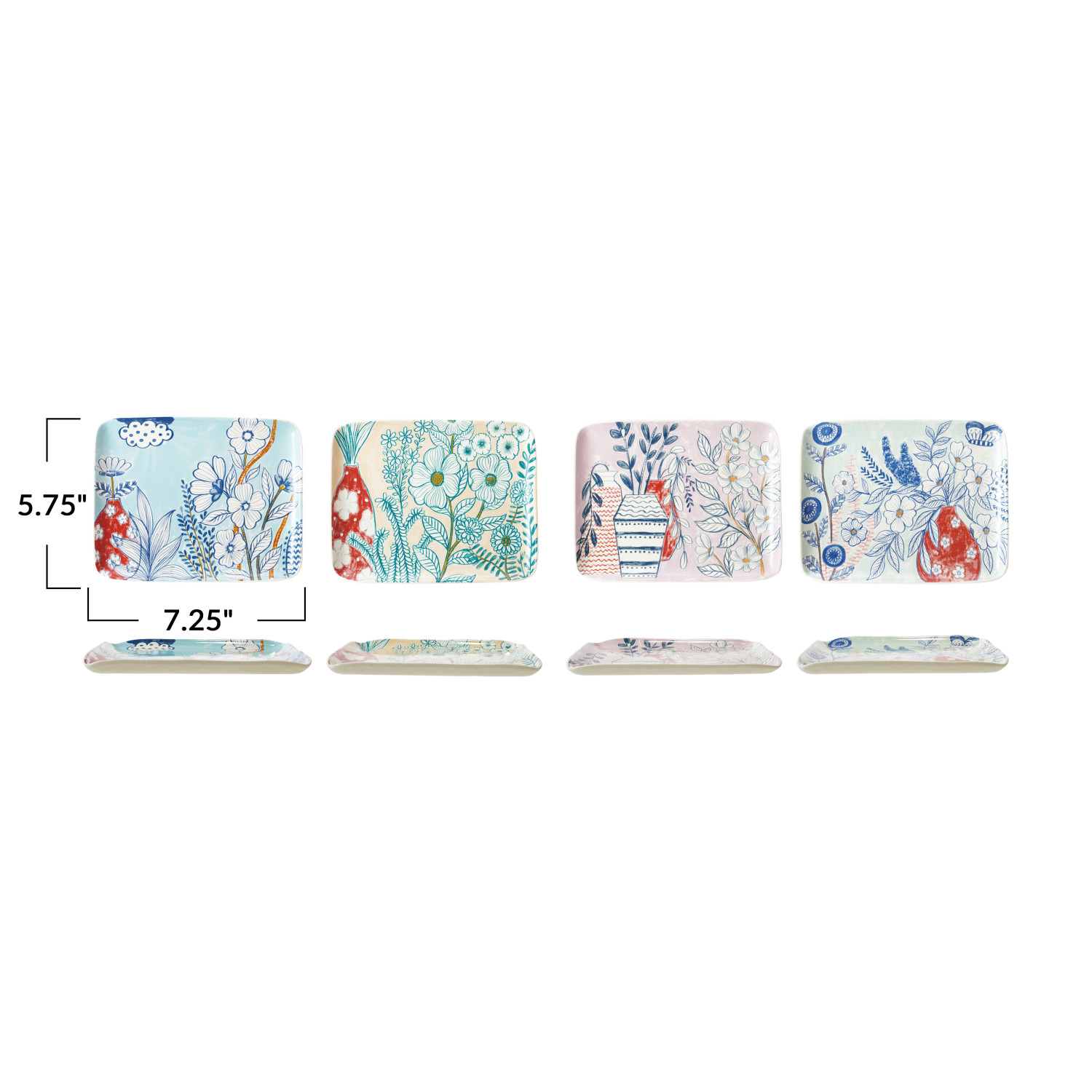 Catalog Name: 7-1/4"L x 5-3/4"W Stoneware Plate w/ Flowers, Multi Color, 4 Styles