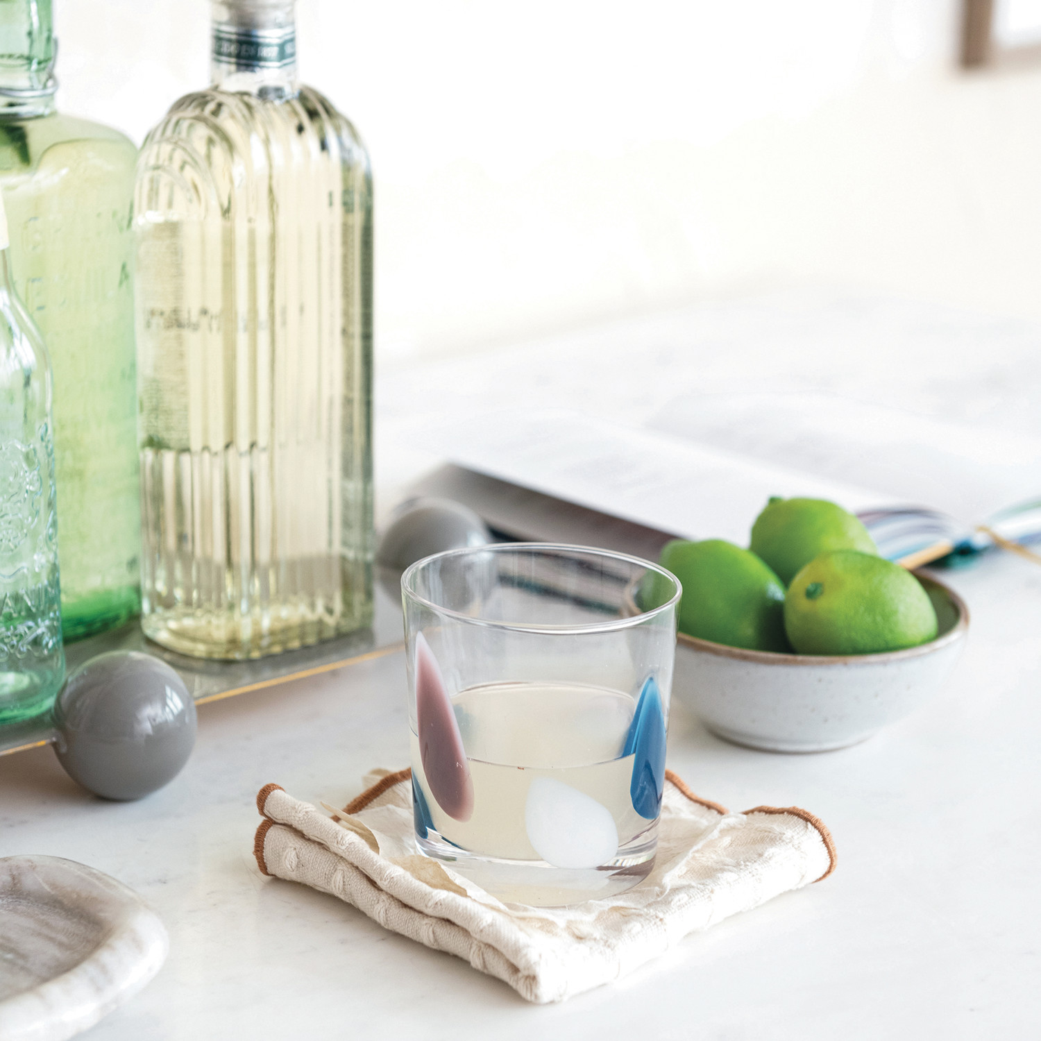 Catalog Name: 3-1/2" Round x 4"H 12 oz. Handmade Art Glass Drinking Glass, Multi Color Blue