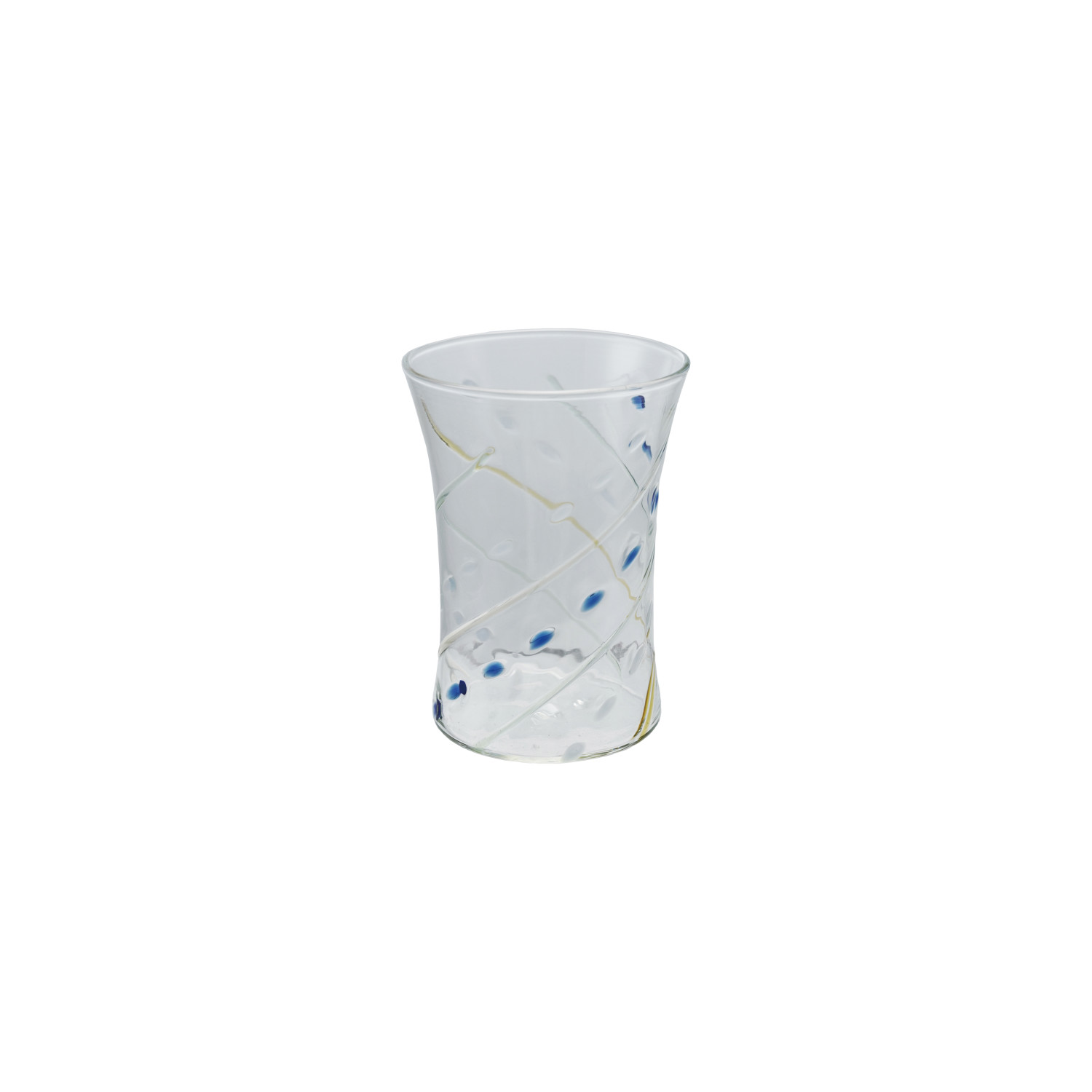 Catalog Name: 3-1/2" Round x 4-3/4"H 14 oz. Embossed Drinking Glass w/ Design, Green & Blue