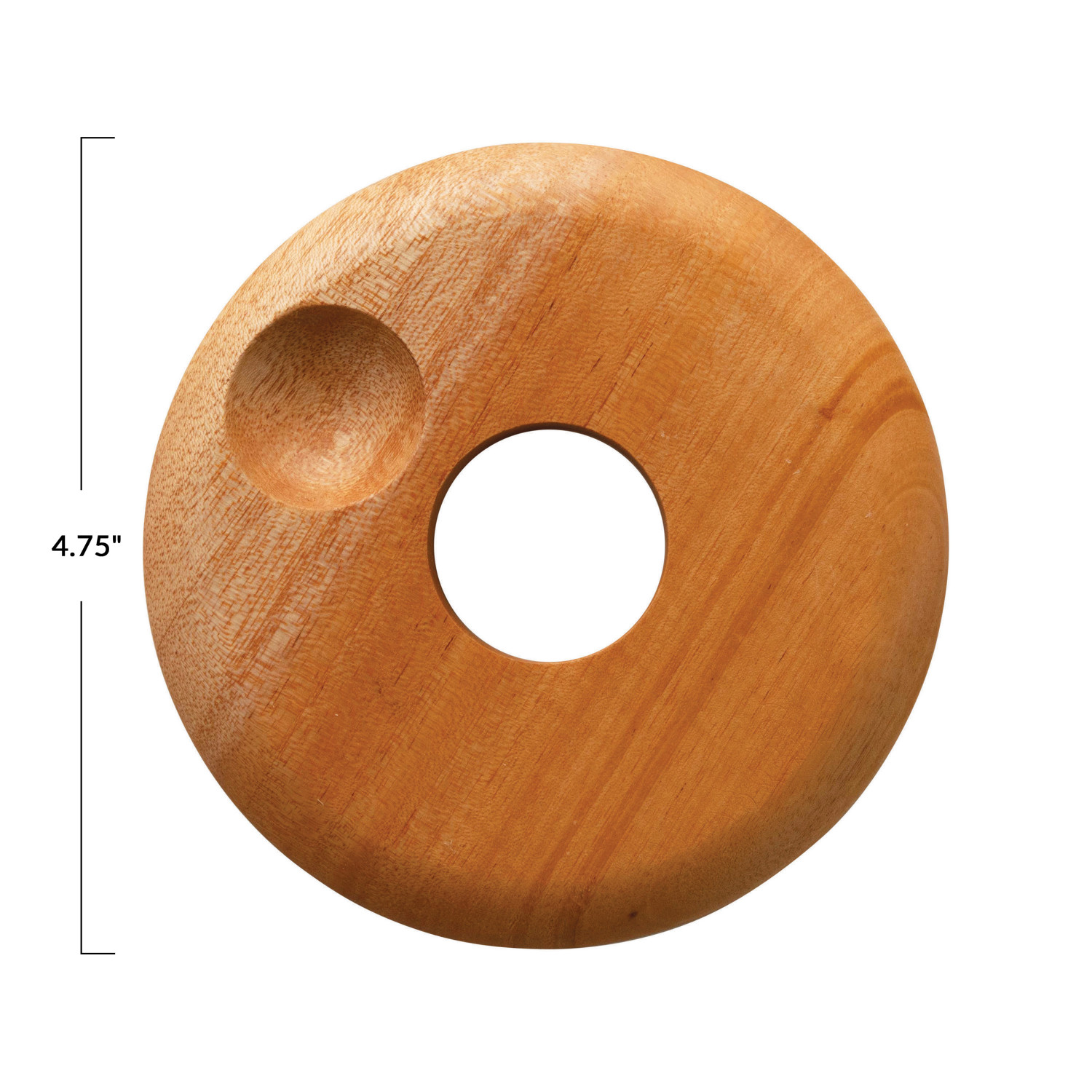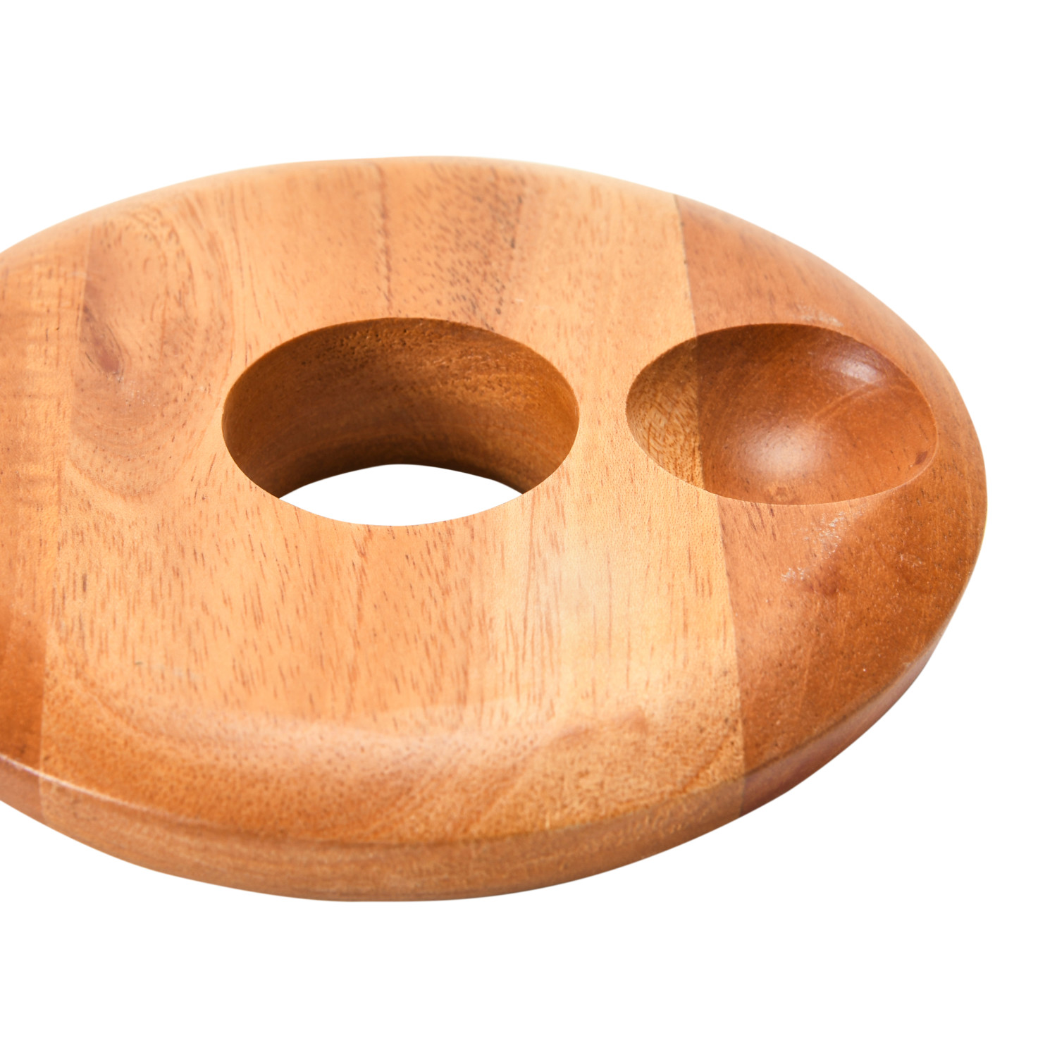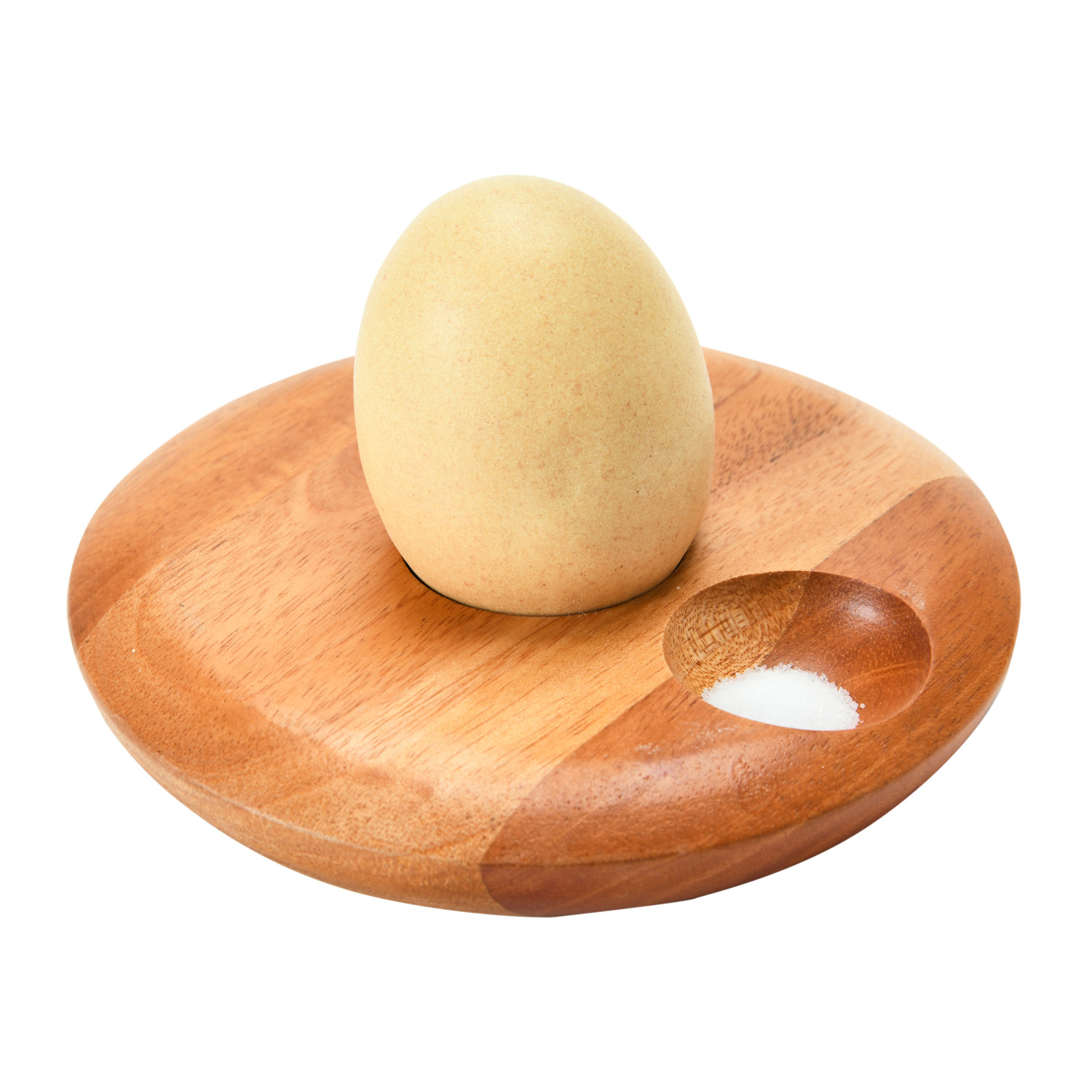 Catalog Name: 4-3/4" Round x 3/4"H Mahogany Wood Egg Holder w/ Salt Indent, Natural (Holds 1 Egg)