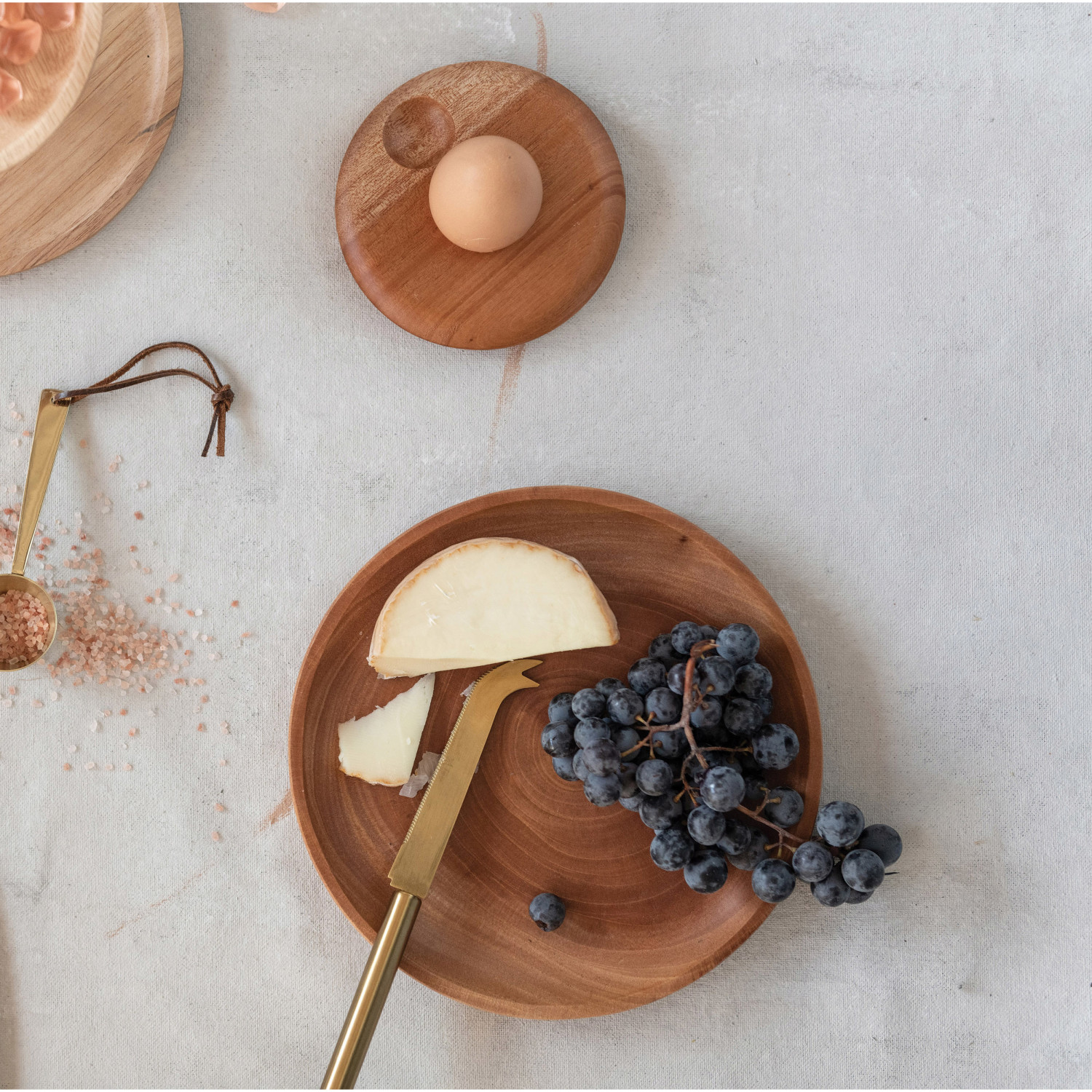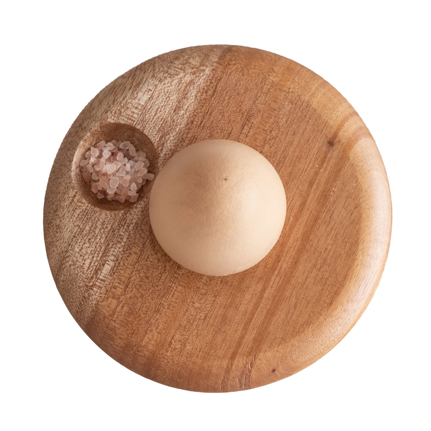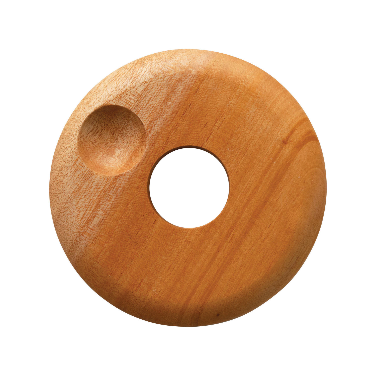 Catalog Name: 4-3/4" Round x 3/4"H Mahogany Wood Egg Holder w/ Salt Indent, Natural (Holds 1 Egg)
