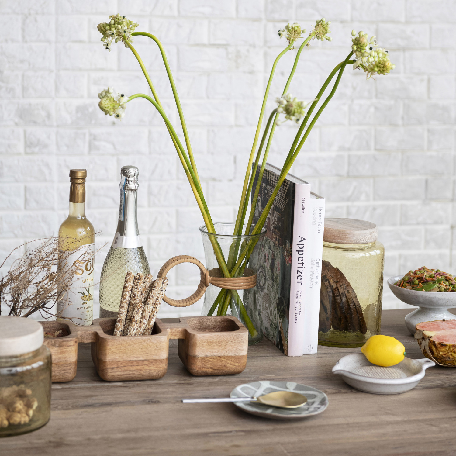 This large hammered glass jar with a mango wood lid is a stylish and functional kitchen item. Made of strong, durable clear glass with a hammered texture, it adds a sparkling and interesting look. The natural, smooth mango wood lid, in yellow and whitewashed color, adds brightness and character to the space. With a capacity of 2.5 quarts, it keeps contents fresh and prevents moisture and dust. The jar is ideal for storing dry goods like pasta, rice, beans, or nuts, and can be used to organize the pantry or as a vase for flowers or plants. It can also match different decor styles, creating a cheerful and cozy atmosphere in the kitchen. This hammered glass jar is a great way to enjoy the beauty and functionality of glass and wood in the home or a thoughtful gift for those who love colorful and handmade products.