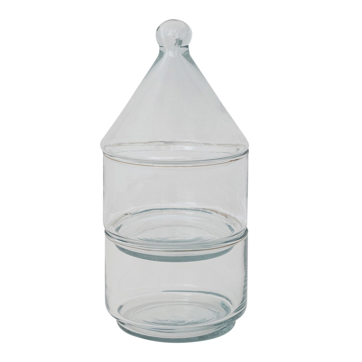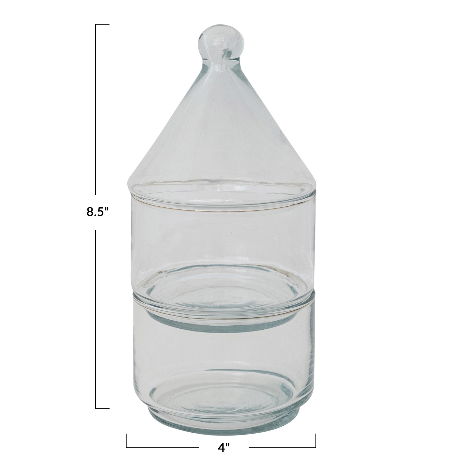 Catalog Name: 4" Round x 8-1/2"H 12 oz. Hand-Blown Recycled Glass Stackable Jars w/ Lid, Set of 2