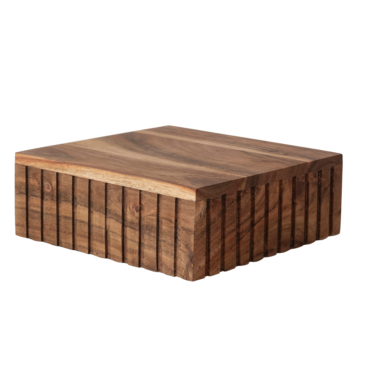 Catalog Name: 8" Square x 3"H Carved Mango Wood Platform Cheese/Serving Board, Natural