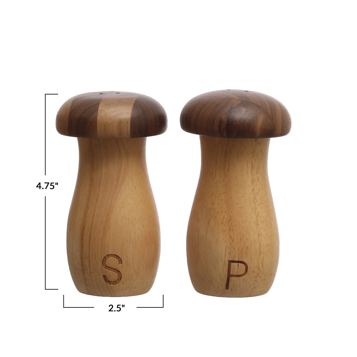 Rubberwood & Walnut Mushroom Shaped Salt & Pepper Shakers, Natural, Set of 2
