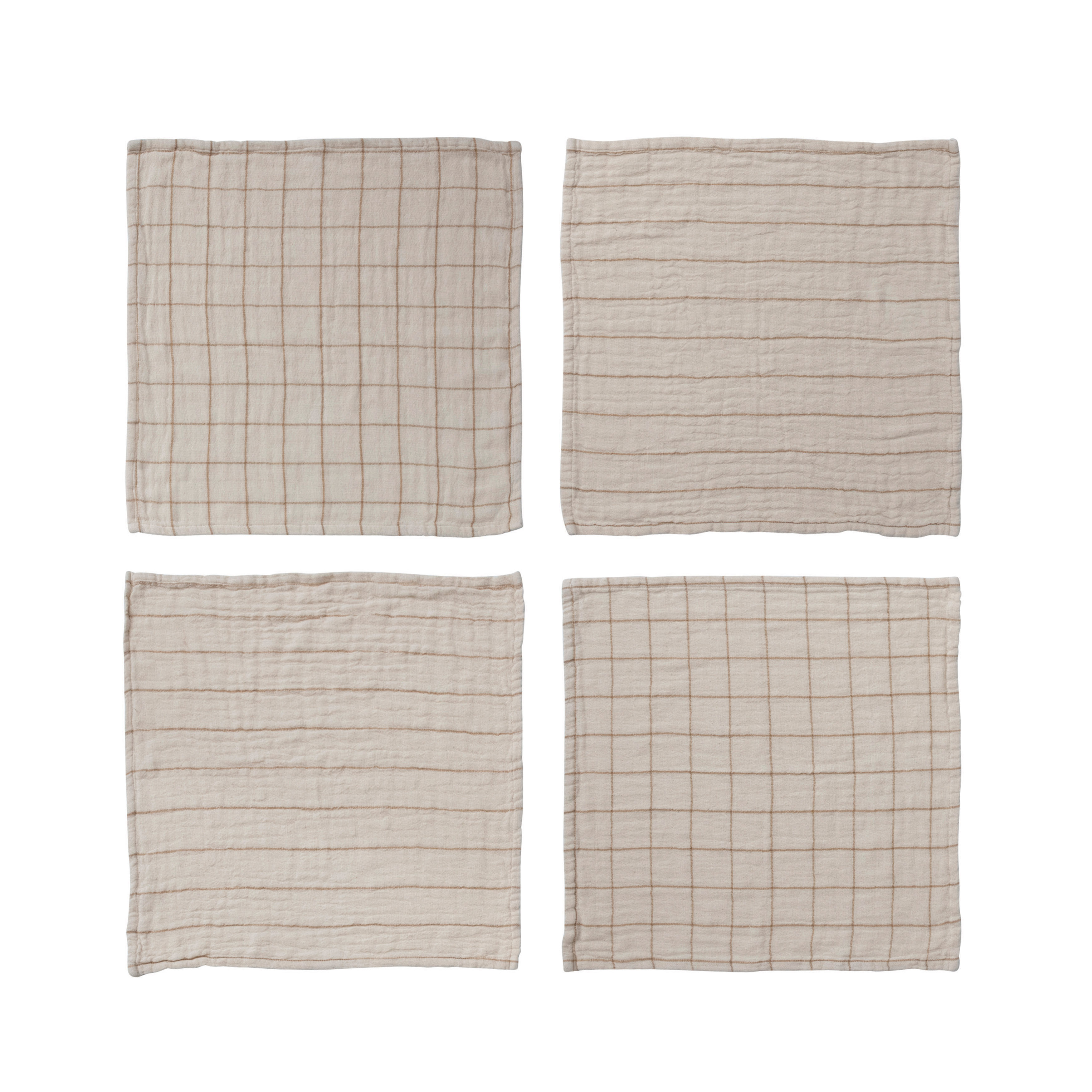 Cotton Double Cloth Napkins with Grid/Stripe Pattern, Set of 4
