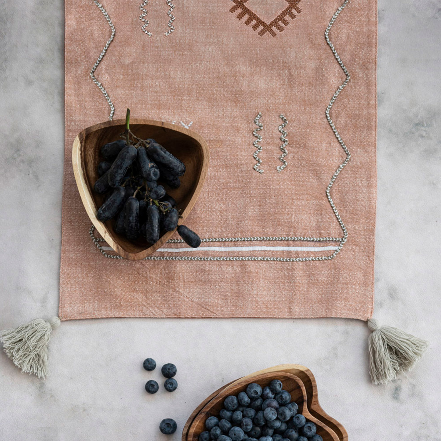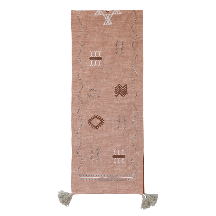 Cotton Table Runner w/ Embroidered Moroccan Design & Tassels, Multi Color