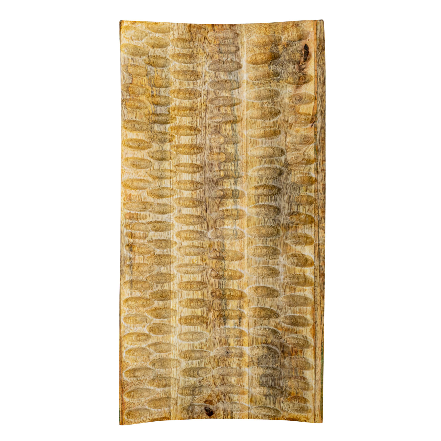 Catalog Name: 15-3/4"L x 8"W x 1-1/2"H Carved Mango Wood Curved Tray, Natural