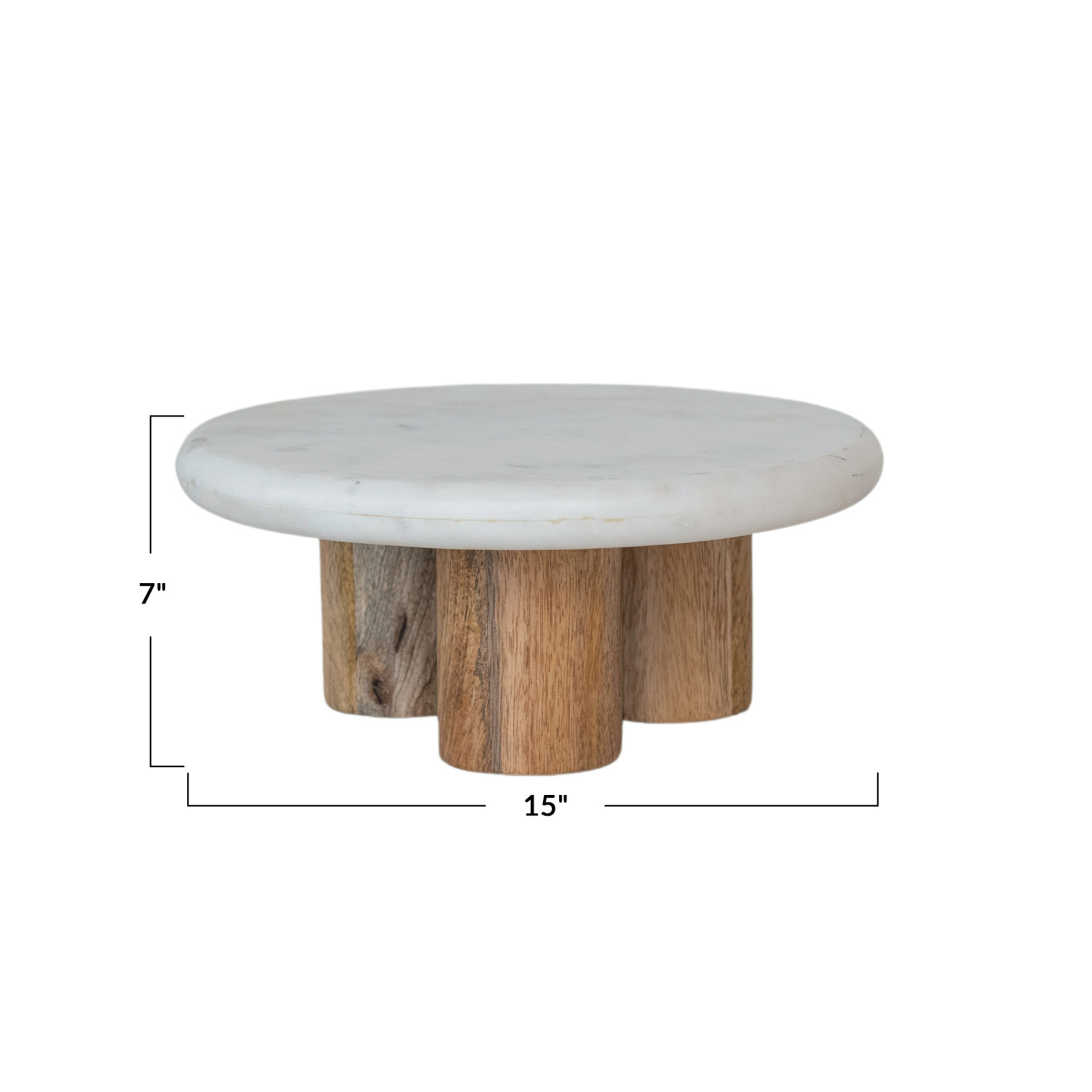 Catalog Name: 15" Round x 7"H Marble Pedestal w/ Mango Wood Legs, White & Natural, KD