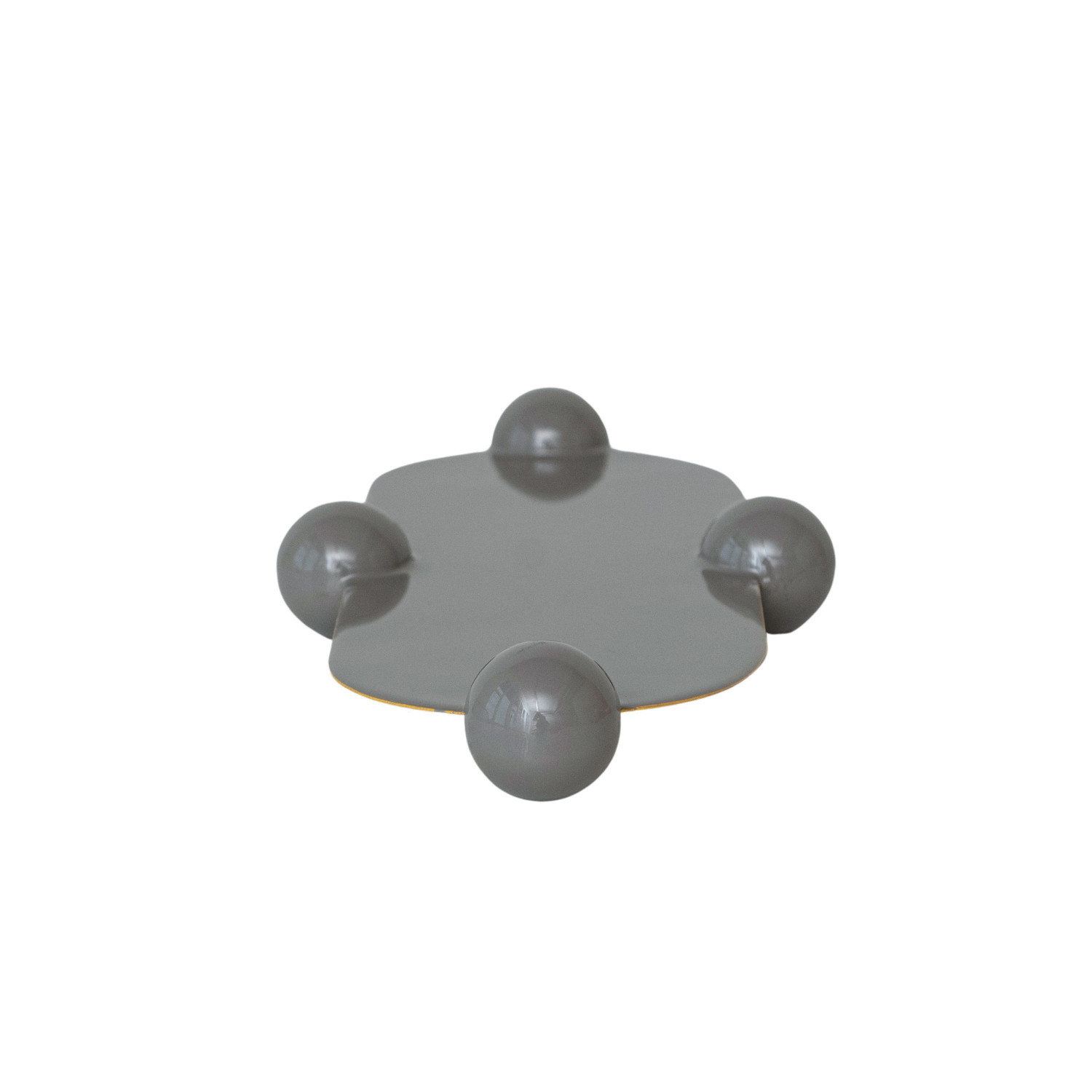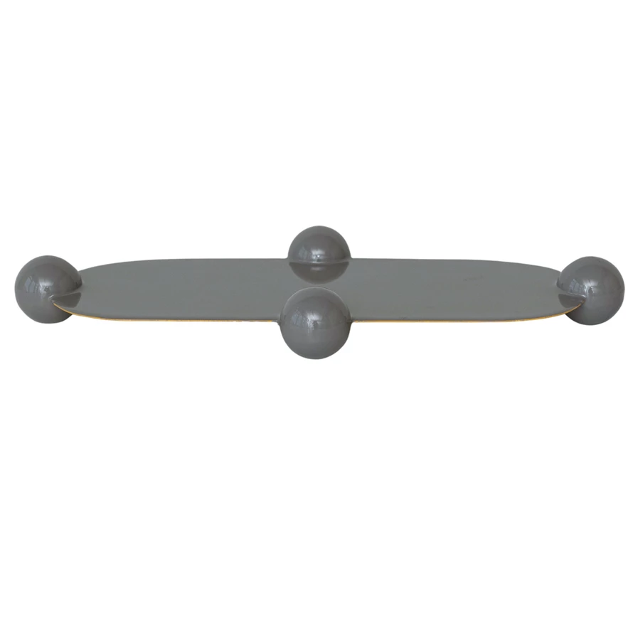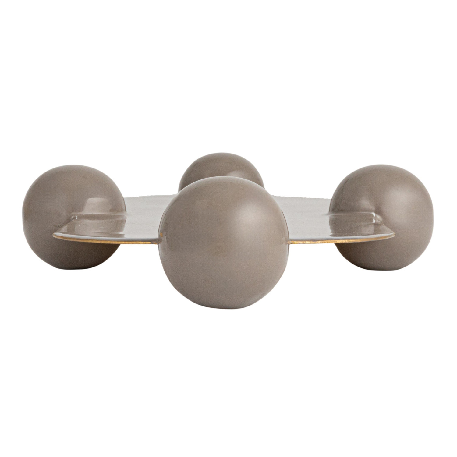 Enameled Metal Ball Footed Tray w/ Gold Finish Edge, Grey