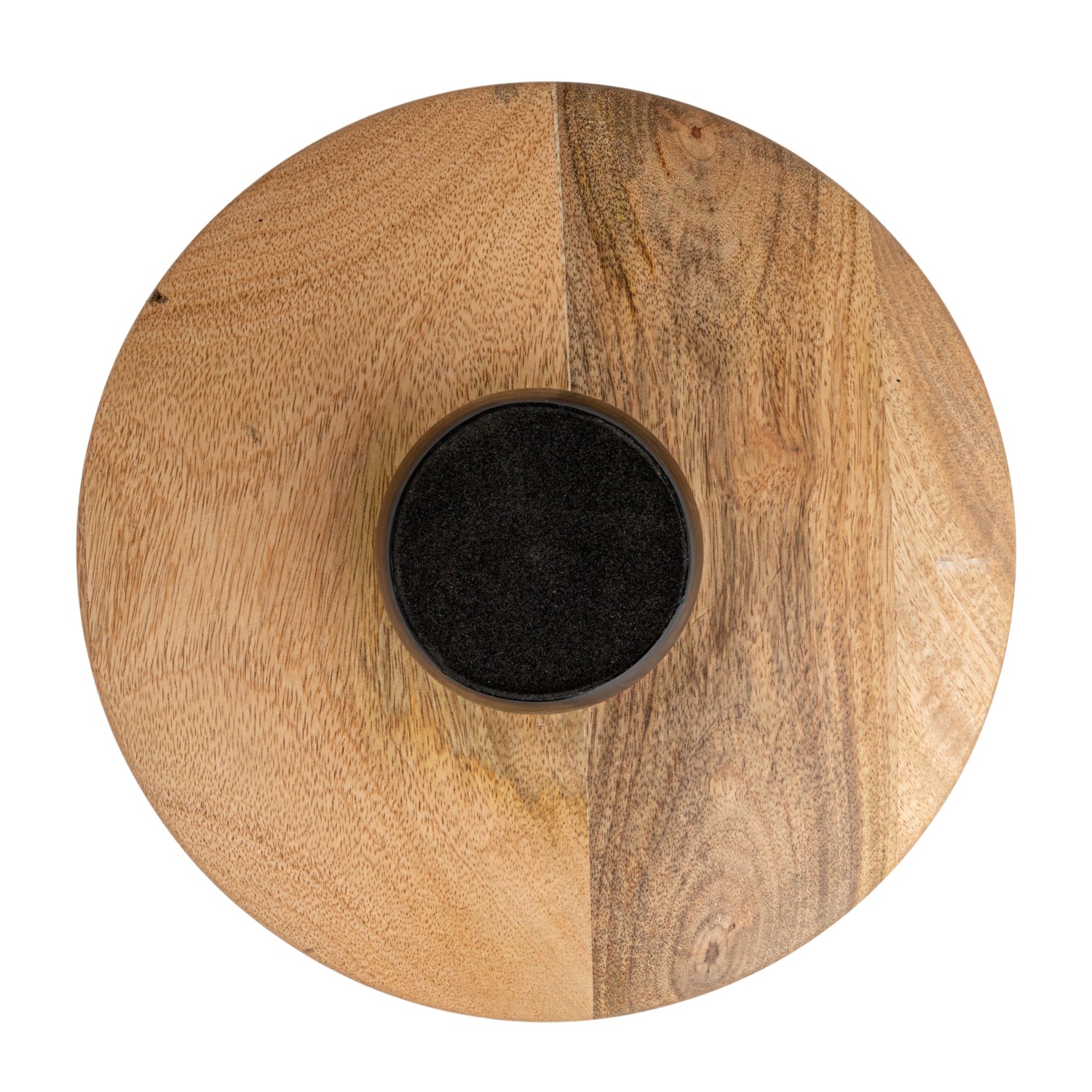 Catalog Name: 9-3/4" Round x 3-1/4"H Enameled Mango Wood Pedestal w/ Metal Base, Brown & Black