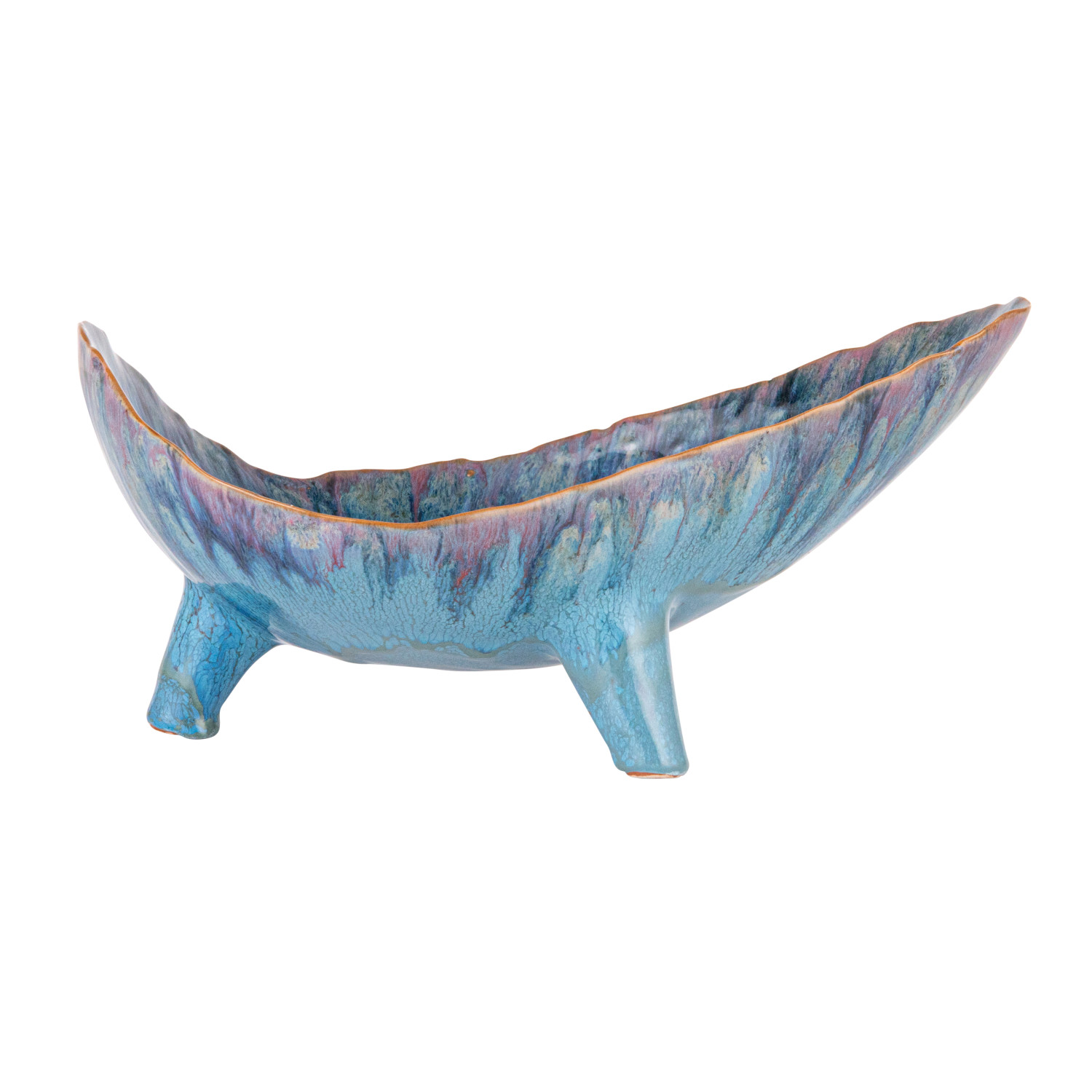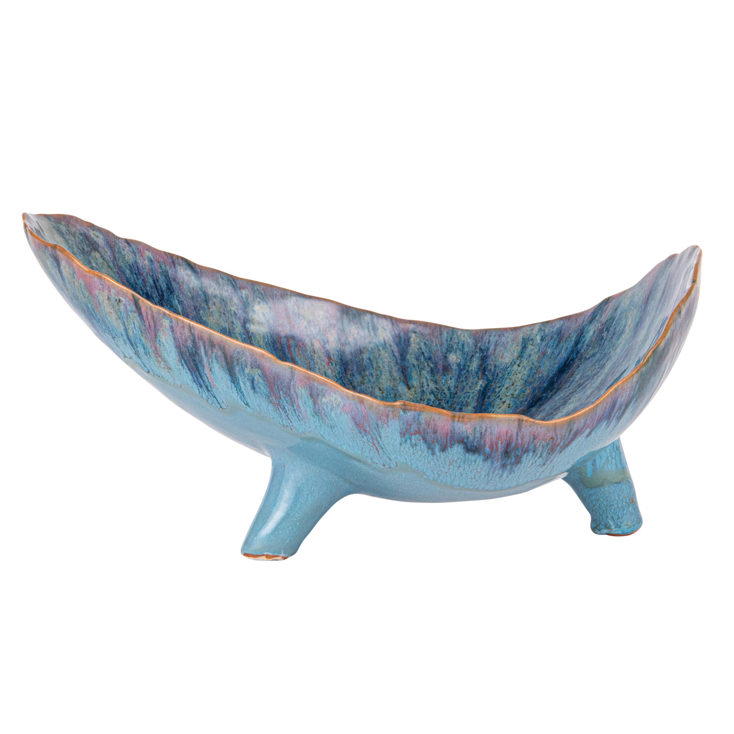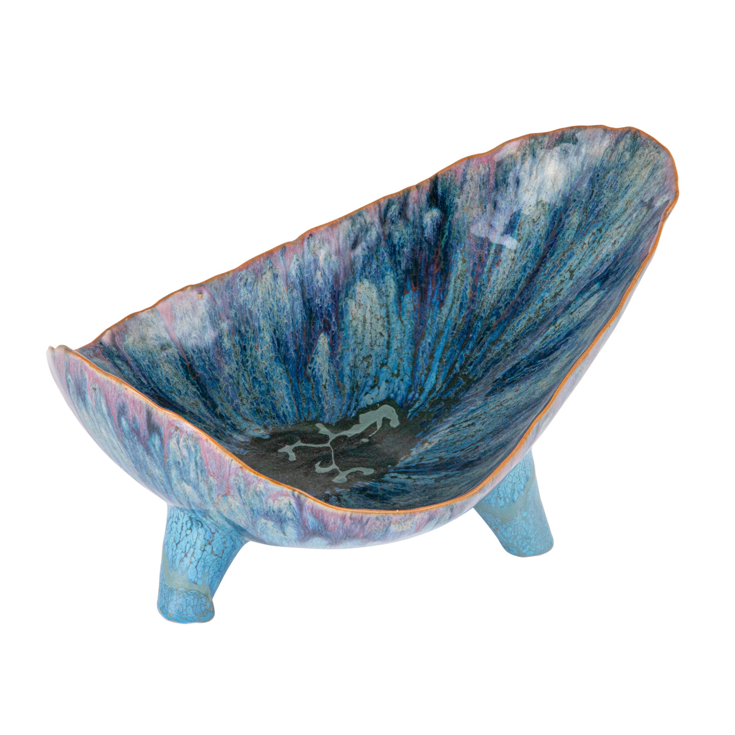 This Azure Footed Stoneware Bowl is a blend of natural form and mesmerizing color. The reactive glaze creates a dynamic blue pattern, with each bowl offering a distinct look that varies from piece to piece. The 12.50 inches in length, 8.50 inches in width, and 6.00 inches in height make it a versatile choice for both serving and showcasing, while the food-safe material ensures it's ready for any occasion. Whether filled with fresh produce or left empty to admire its beauty, this bowl stands out with its elevated design and captivating hue, making it a cherished addition to any home. Its organic shape and footed base combine to create a piece that's as much a conversation starter as it is a functional item.