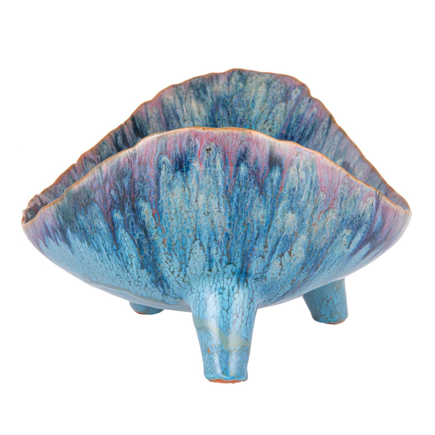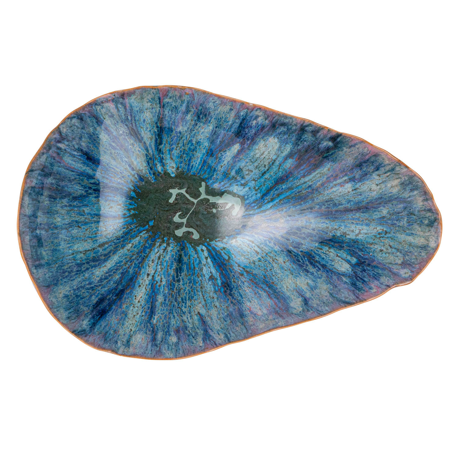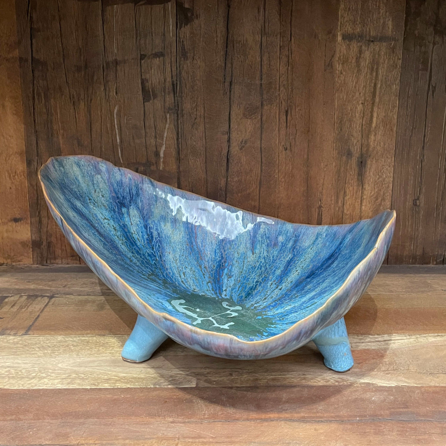 This Azure Footed Stoneware Bowl is a blend of natural form and mesmerizing color. The reactive glaze creates a dynamic blue pattern, with each bowl offering a distinct look that varies from piece to piece. The 12.50 inches in length, 8.50 inches in width, and 6.00 inches in height make it a versatile choice for both serving and showcasing, while the food-safe material ensures it's ready for any occasion. Whether filled with fresh produce or left empty to admire its beauty, this bowl stands out with its elevated design and captivating hue, making it a cherished addition to any home. Its organic shape and footed base combine to create a piece that's as much a conversation starter as it is a functional item.