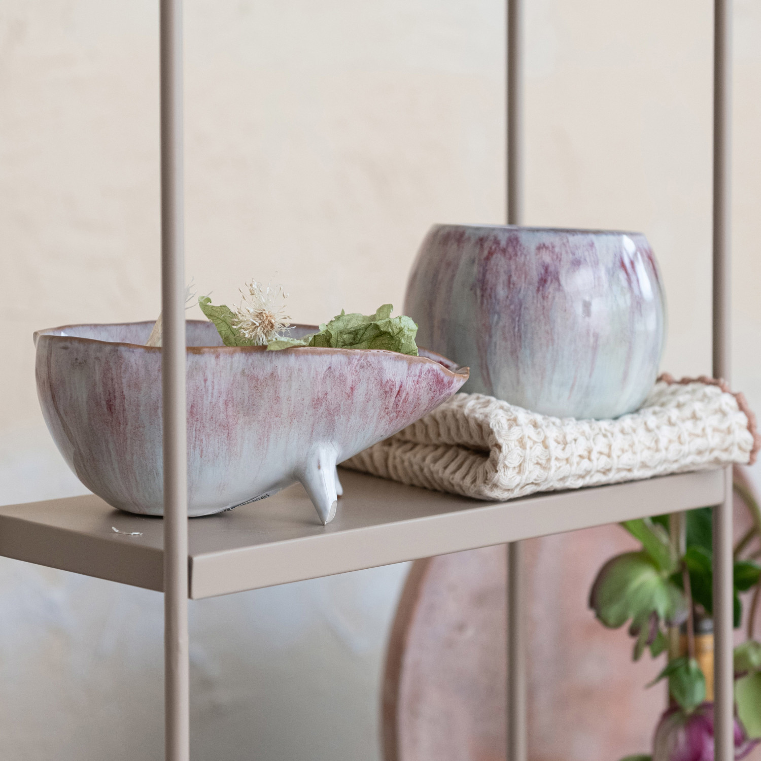 This Berry Stoneware Footed Bowl exudes a delicate charm, with its organic form and soothing color palette of white and berry achieved through a reactive glaze. Each bowl is unique, with subtle variations in the finish that add to its allure. The dimensions of 6.50 inches in length, 4.00 inches in width, and 2.75 inches in height make it an ideal choice for presenting small dishes or enhancing the home with its understated beauty. Whether used for dining or as a part of every interior design, this bowl's food-safe quality and enchanting appearance make it a versatile and treasured addition to any collection.