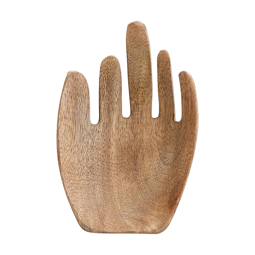 Catalog Name: 5"L x 3"W Carved Mango Wood Hand Shaped Dish, Natural
