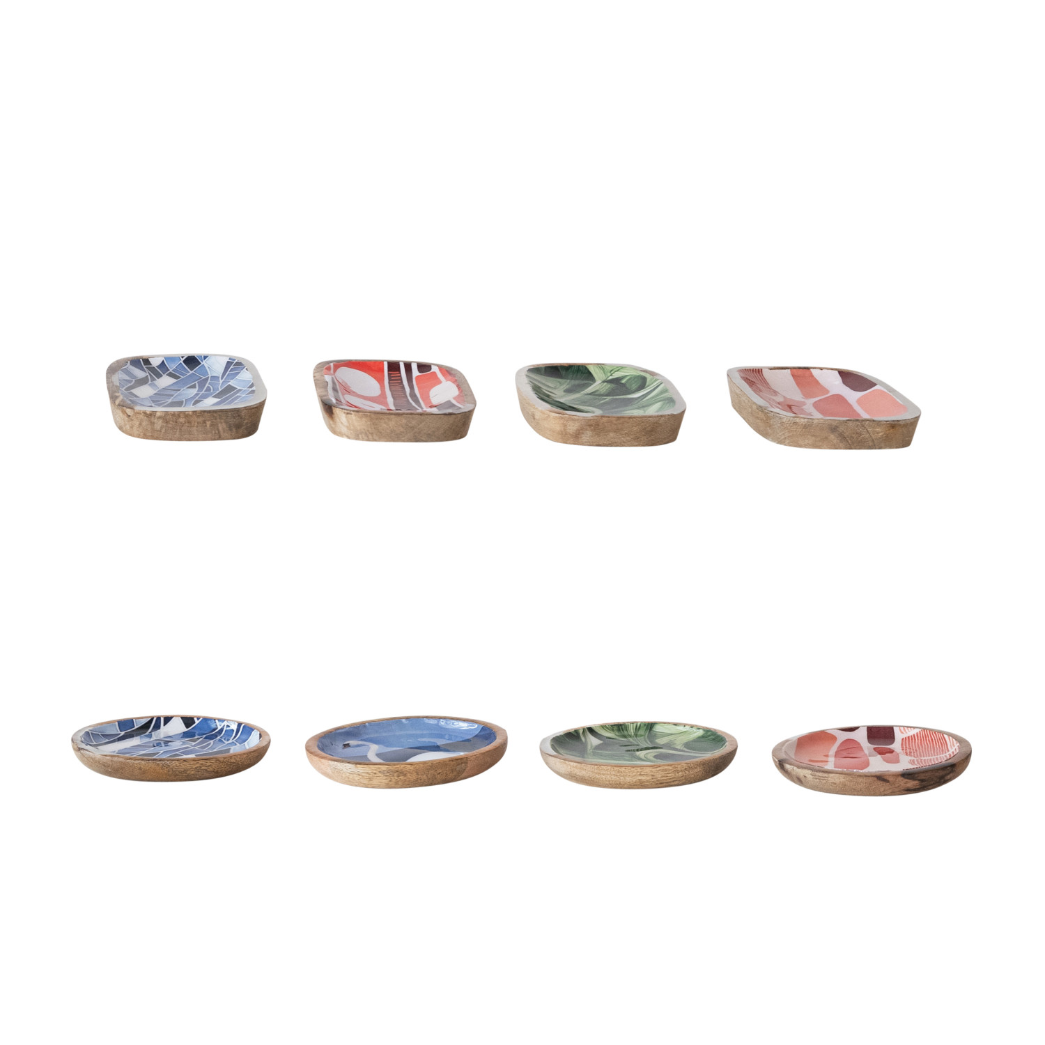 Catalog Name: 4" Round - 5"L Enameled Mango Wood Dish w/ Design/Image, Multi Color, 8 Styles