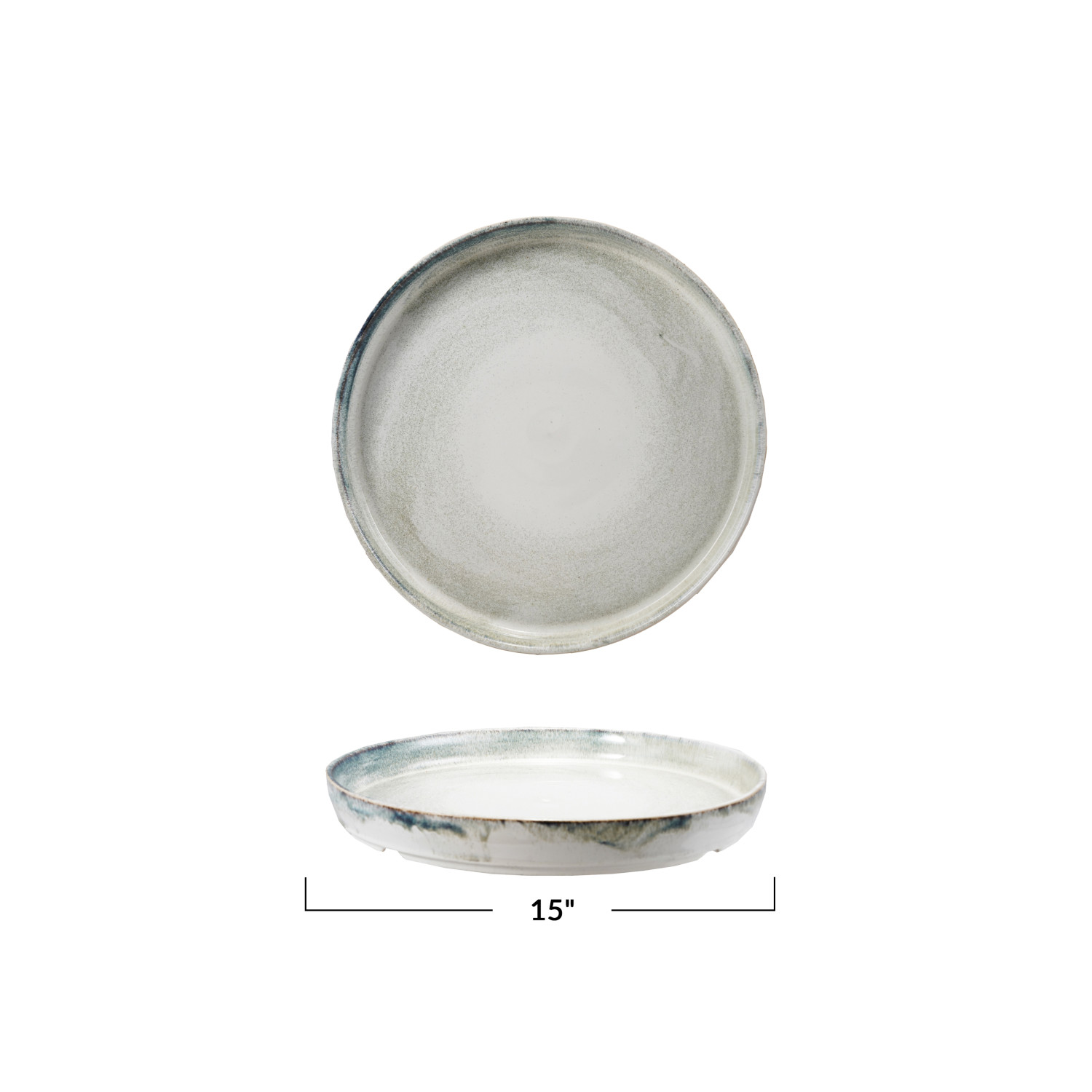 Catalog Name: 15" Round Stoneware Platter, Reactive Glaze, Blue & White (Each One Will Vary)