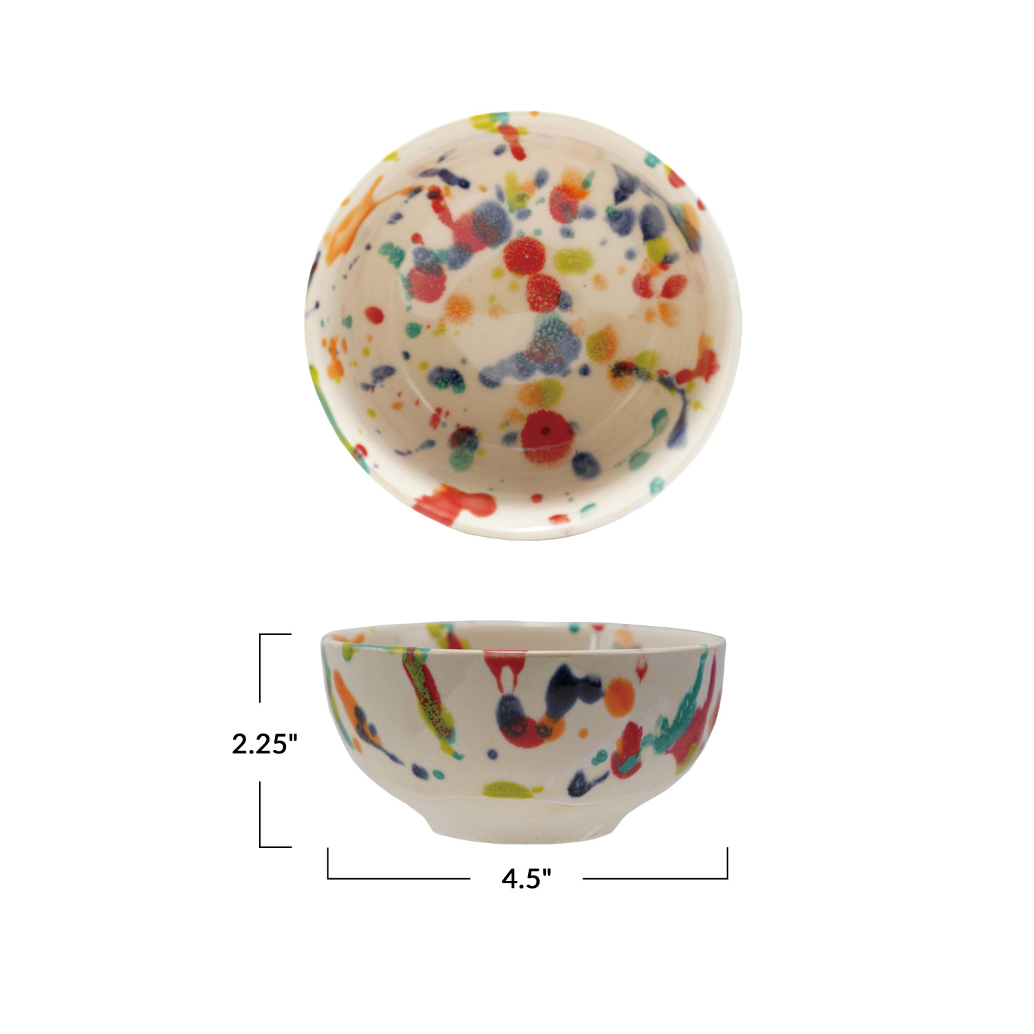 Catalog Name: 4-1/2" Round x 2-1/4"H Handmade Stoneware Bowl, Rolled Speckled Finish & Unglazed, Multi Color (Each One Will Vary)