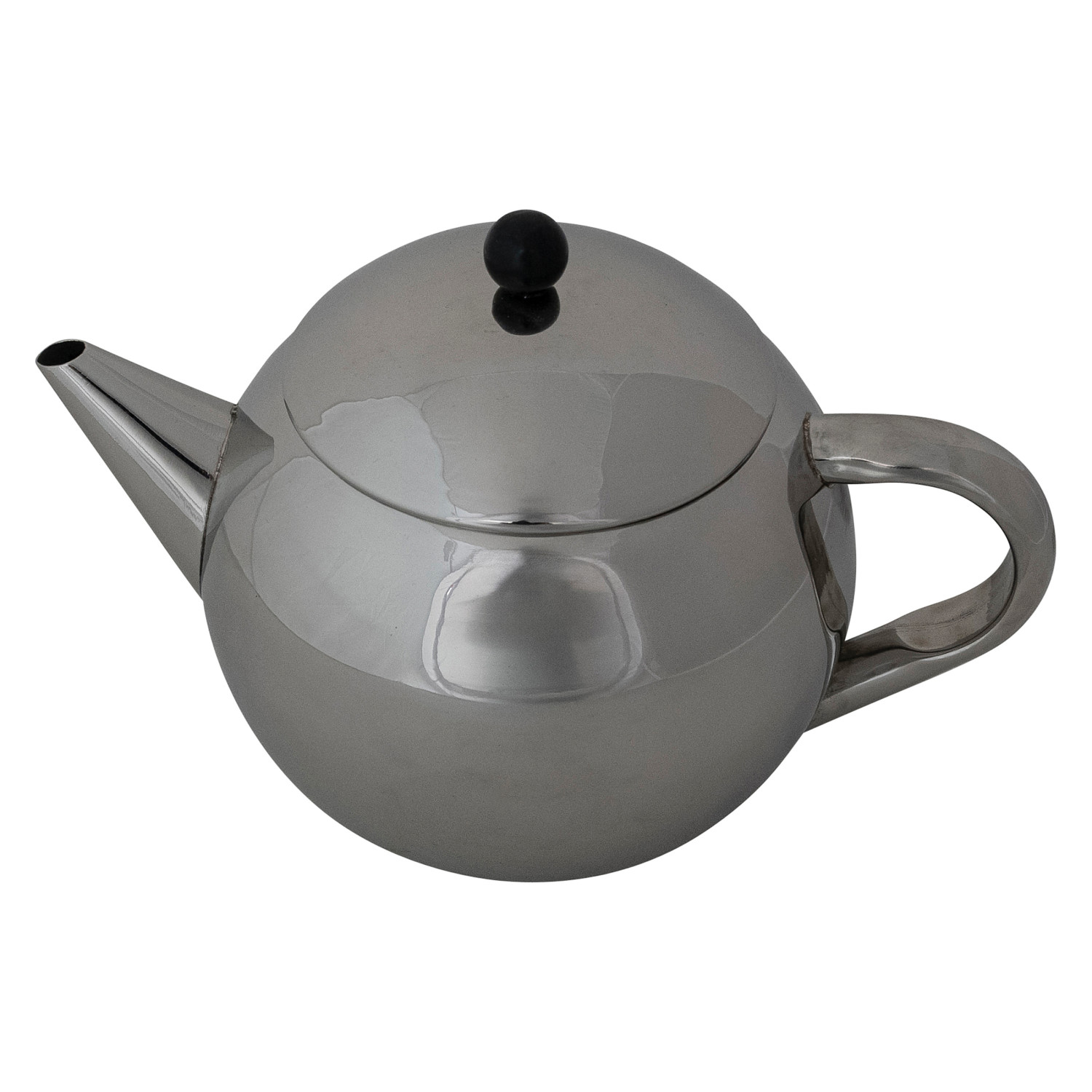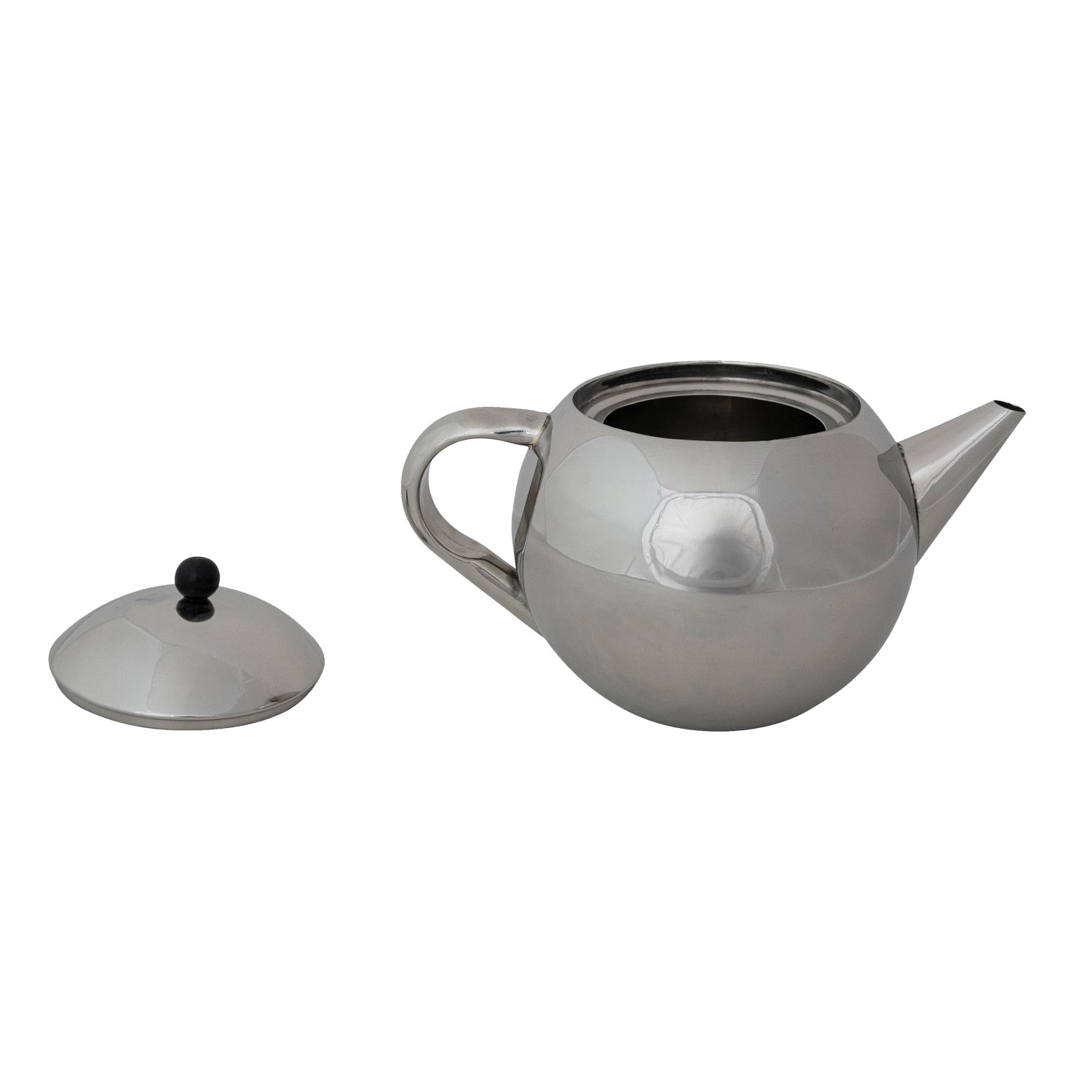 Catalog Name: 9"L x 6"W x 6-1/4"H 40 oz. Stainless Steel Teapot w/ Black Knob