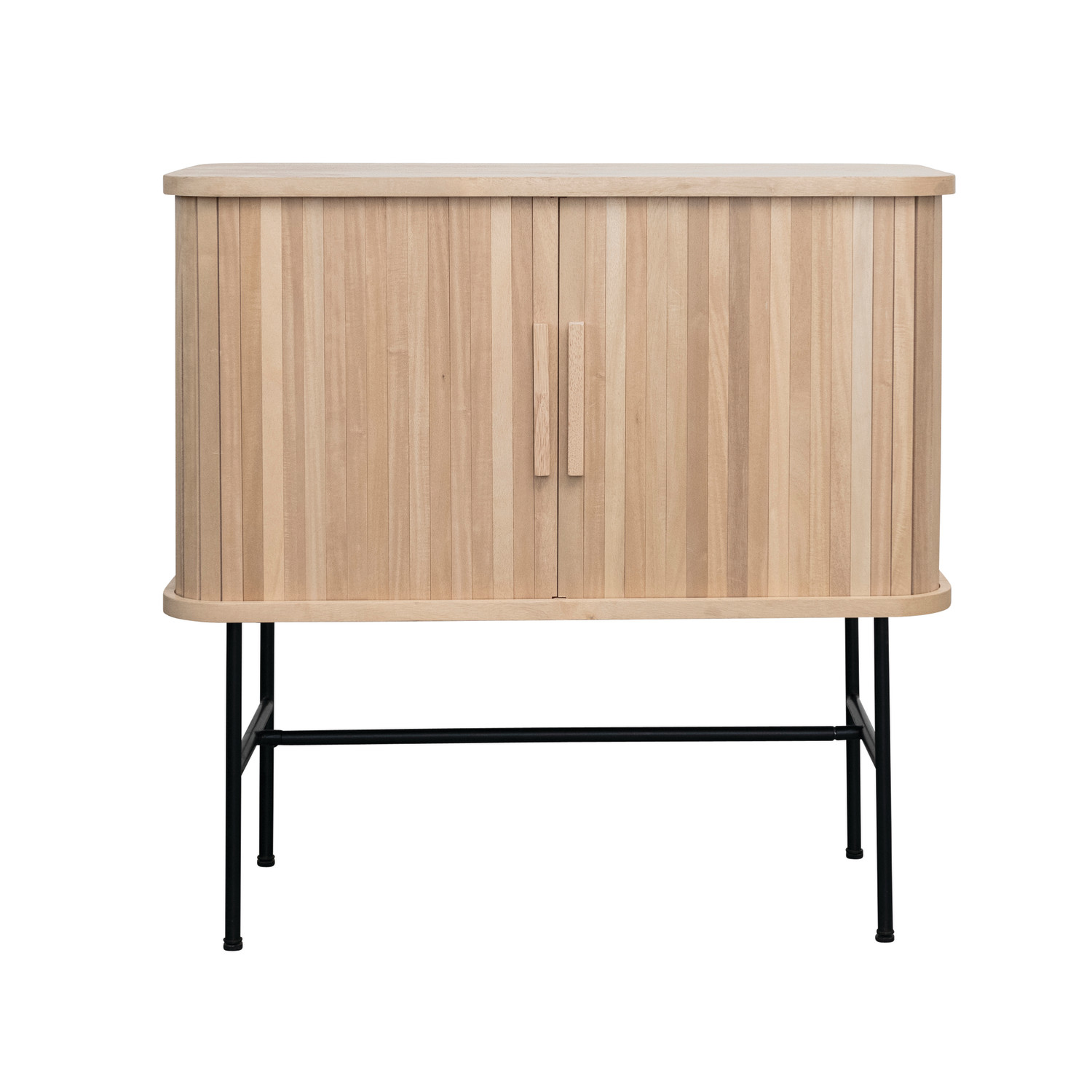MDF & Metal Cabinet w/ Sliding Doors & 3 Compartments, Natural & Black, KD
