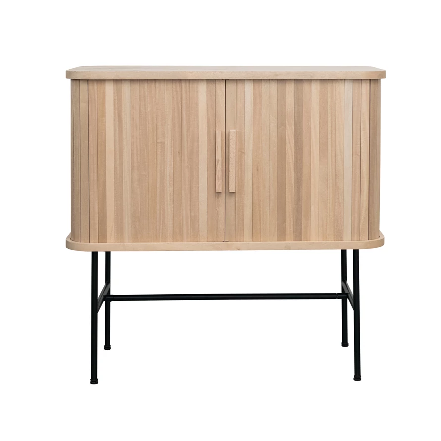 This wood and metal cabinet with sliding doors and compartments is a great way to add some style and functionality to any home. It has a simple yet stylish design that will complement any room. It has three storage compartments that are divided by metal sliding doors. The compartments can store and display items, such as books, dishes, clothes, or accessories. The metal sliding doors have a black finish that matches the powder-coated metal legs that support the cabinet. The doors also have cut-out handles that make them easy to slide open and close. The cabinet is easy to assemble and comes with all the necessary hardware and instructions. It also comes with an anti-tip kit for safety and stability. It is made of wood and metal, which are durable and easy-to-clean materials. The cabinet measures 31.5 inches in length, 15.5 inches in width, and 30 inches in height, making it spacious enough for any need. This wood and metal cabinet with sliding doors and compartments add some industrial flair and extra storage space to any home. Order it today and enjoy the beauty and functionality it brings to the home. Add some industrial flair and extra storage space to the home with this cabinet that features a wood frame and metal sliding doors. This cabinet is ideal for a rustic, farmhouse, or urban style décor, and it will add a touch of warmth and sophistication to any room. Use the compartments to store and display any items, such as books, dishes, clothes, or accessories. It is made of wood and metal, which are durable and easy-to-clean materials.