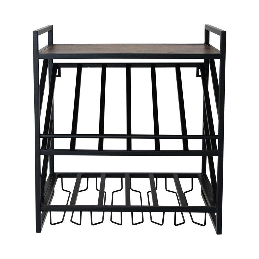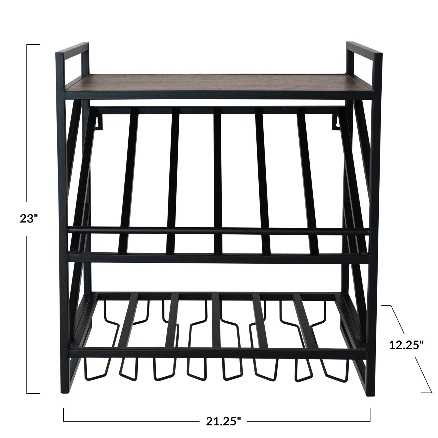 Catalog Name: 21-1/4"W x 12-1/4"D x 23"H Metal & Mango Wood Wall Shelf w/ Shelf, Bottle & Stemmed Glass Holders, Matte Black & Natural (Holds 12 Bottles & Approximately 12 Stemmed Glasses)