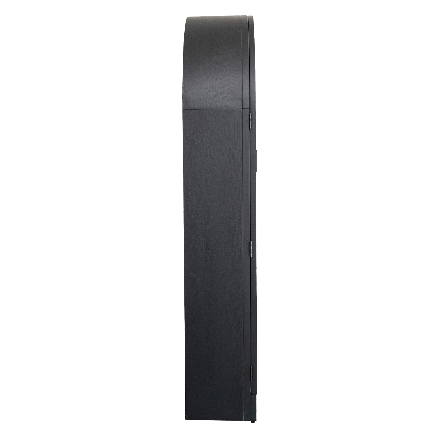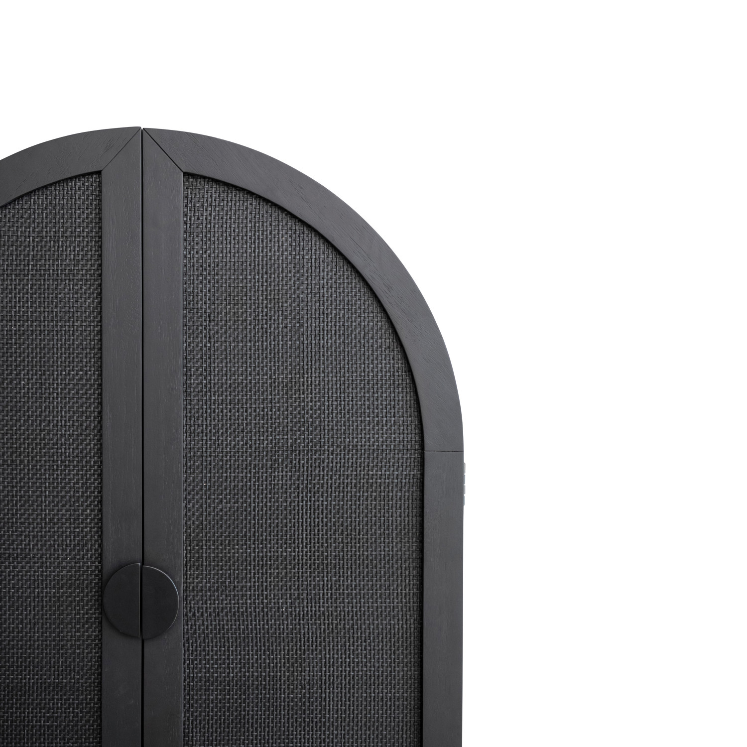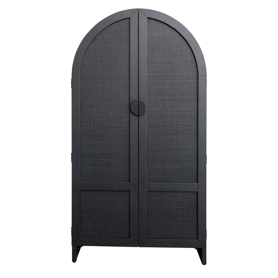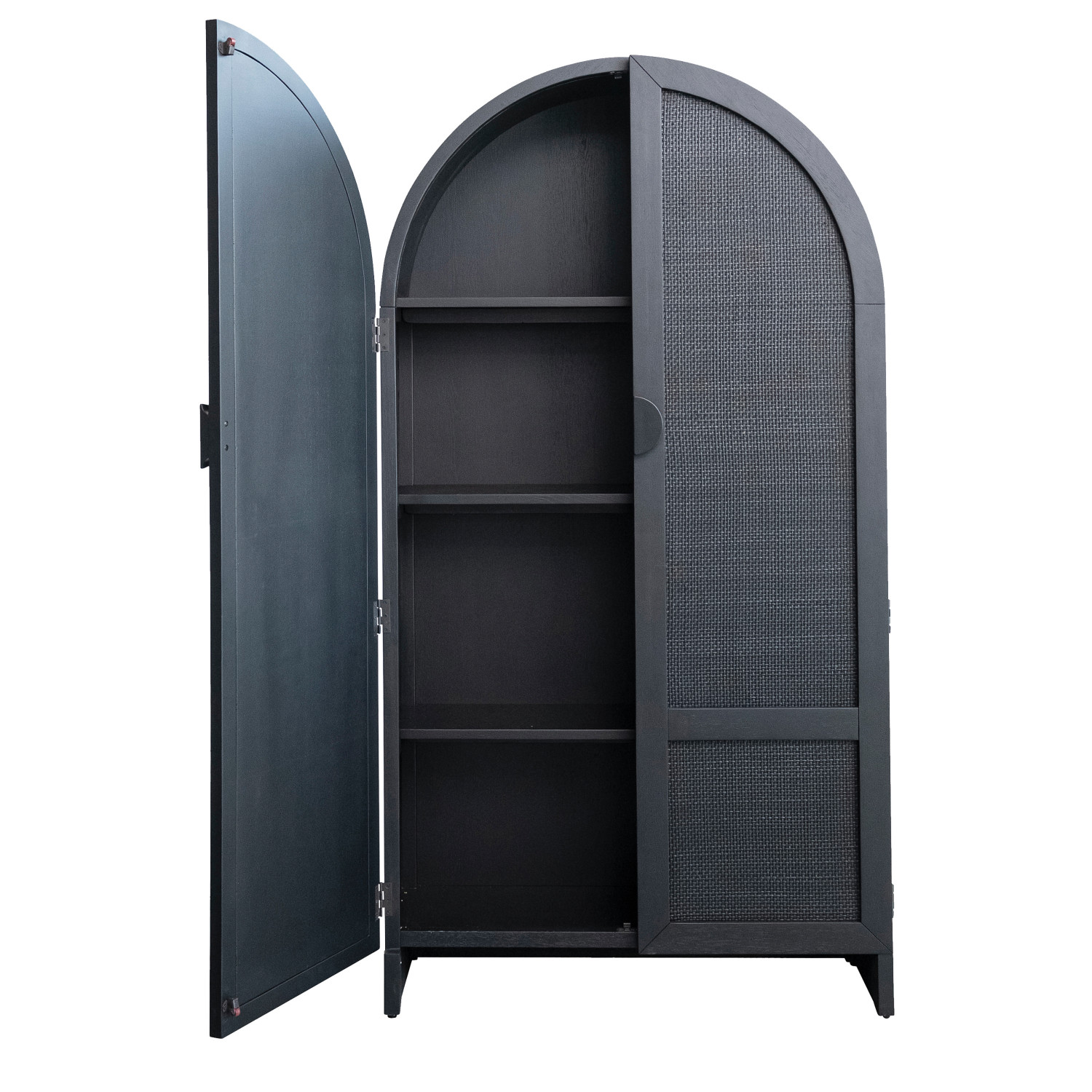 Rubberwood & Oak Wood Veneer Arched Cabinet with 2 Cane Doors & 3 Shelves, Black