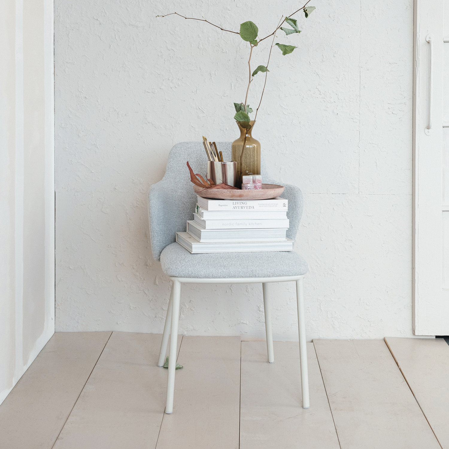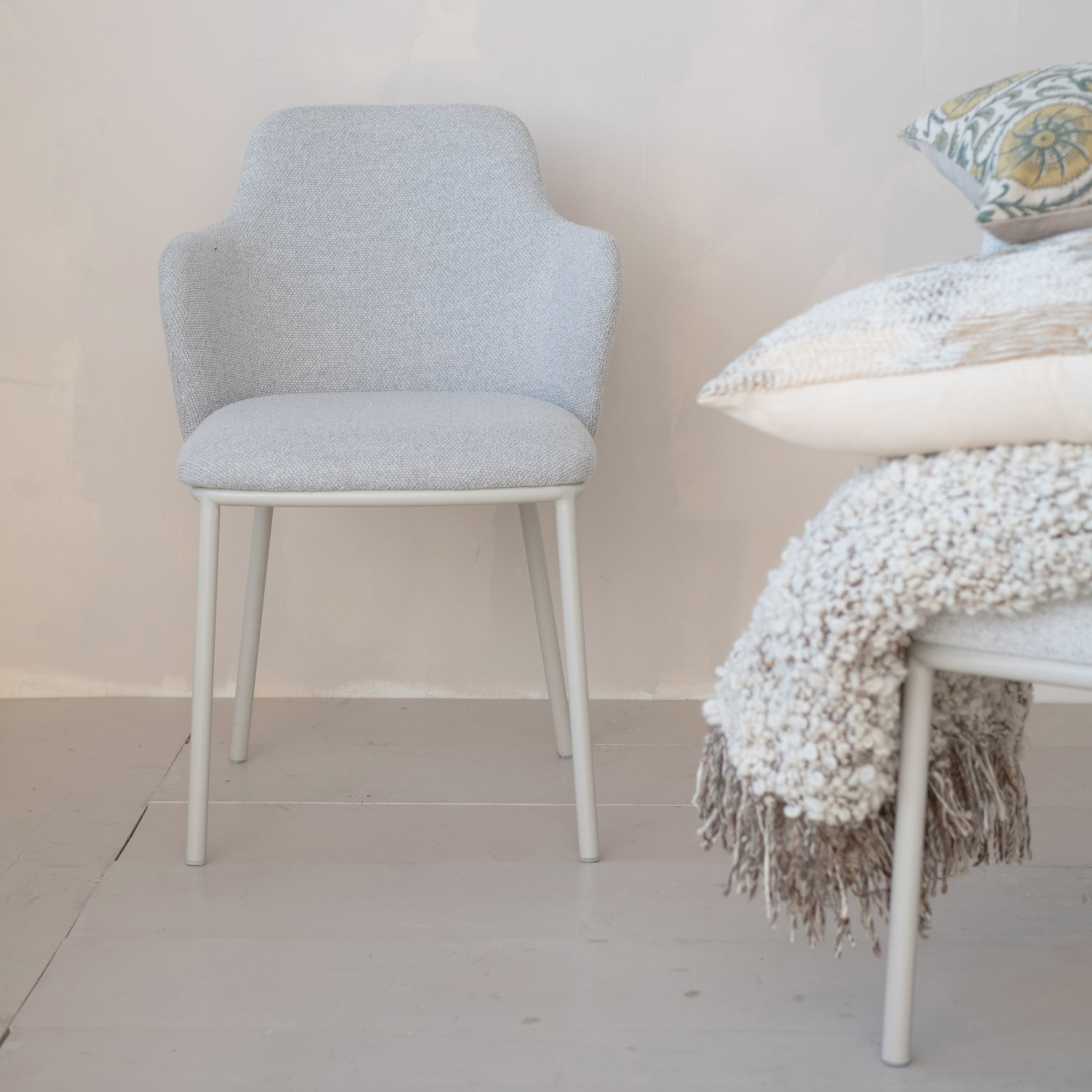 Melange Fabric Upholstered Dining Chair w/ Metal Powder Coated Legs