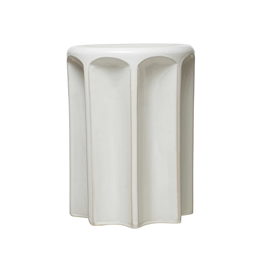 Catalog Name: 13-1/2" Round x 18"H Sculpted Stoneware Stool/Table, White, Truck Ship