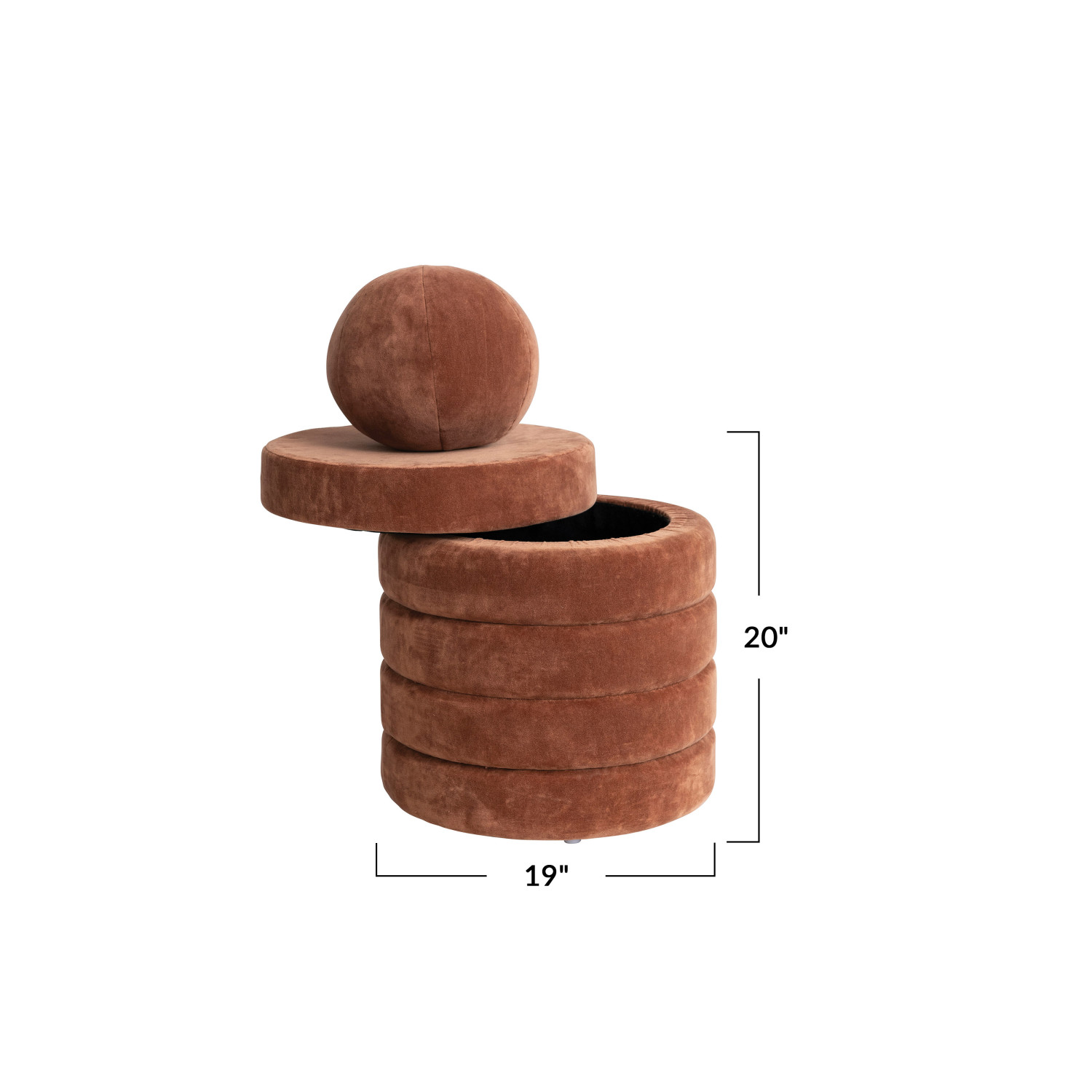 Upholstered Stool/Ottoman w/ Storage & 10" Round Cotton Velvet Orb Pillow, Set of 2