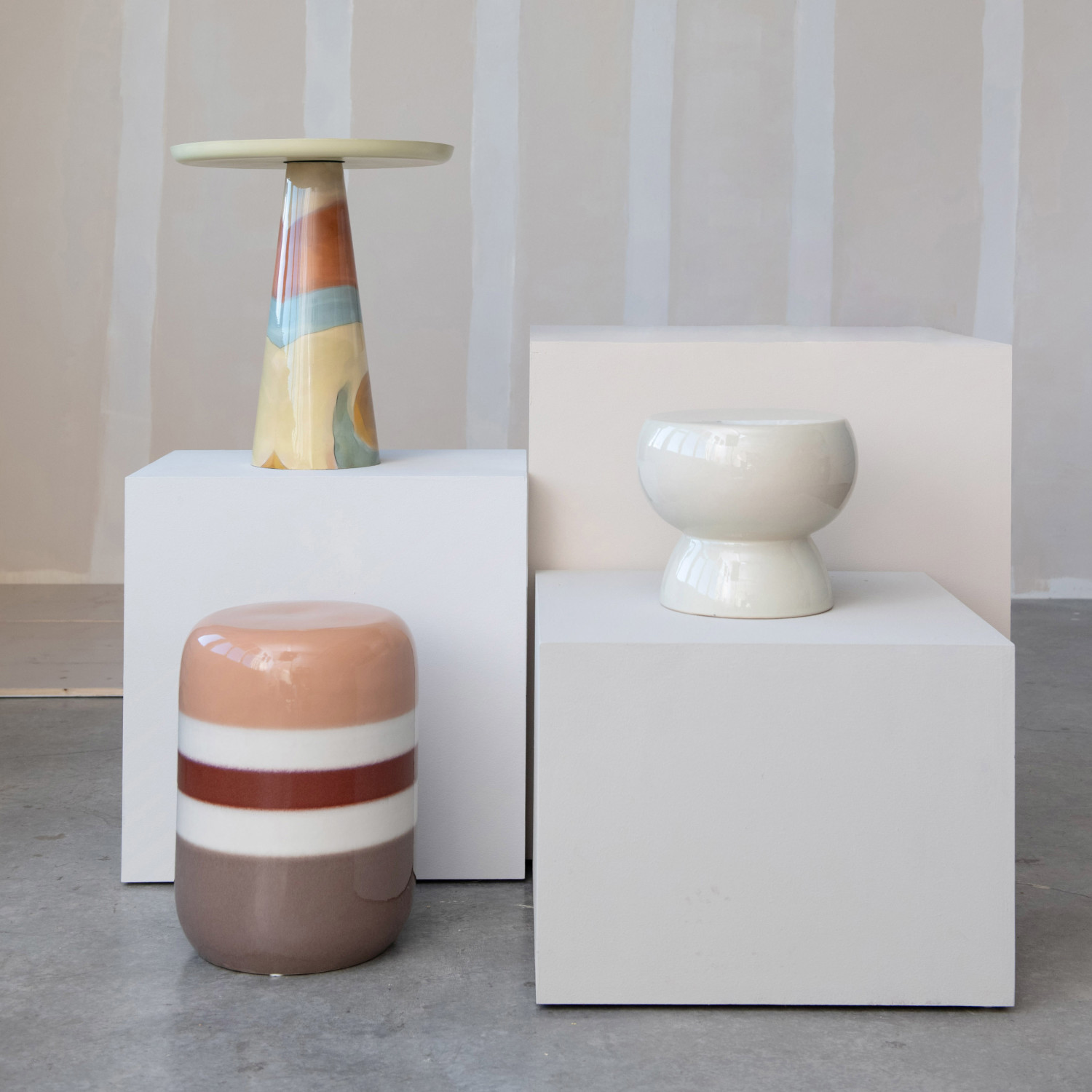 Stoneware Stool/Table w/ Stripes, Reactive Glaze (Each One Will Vary)