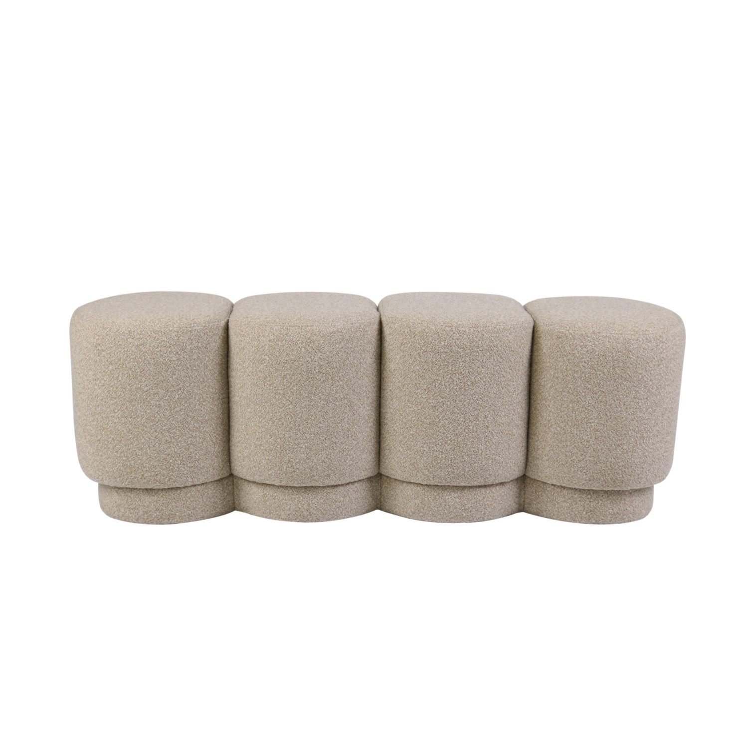 Catalog Name: 48-1/2"W x 14-3/4"D x 17"H Bouclé Fabric Upholstered Bench, Cream Color