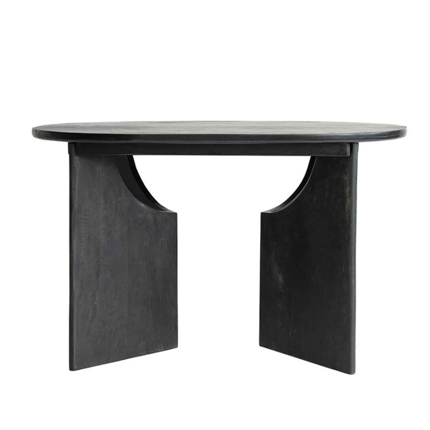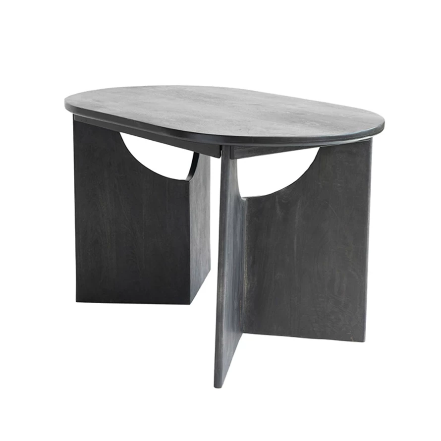 Create a chic and sophisticated dining space with this black mango wood oval dining table. This dining table has an oval shape that gives it a spacious and elegant look. It has a black finish that gives it a sleek and modern look that matches any color scheme. The table is made of 100% mango wood, a hardwood that is strong, eco-friendly, and has a unique character. The tabletop is smooth and solid, offering plenty of room for up to six people. The table has two sturdy legs that provide stability and support. The table measures 51 inches in length, 31.5 inches in width, and 30 inches in height, and has a weight capacity of 330 pounds. It can be paired with any chairs or benches of choice or matched with other black mango wood furniture pieces. It can complement contemporary, minimalist, or industrial-style homes with its sleek and modern design. This black mango wood oval dining table is a perfect piece of furniture for hosting family dinners, gatherings, or parties. A sleek and modern dining table with an oval shape and a black finish. A great choice for contemporary, minimalist, or industrial-style homes. Features a smooth and solid tabletop that can accommodate up to six people. Made of mango wood for durability and natural beauty.