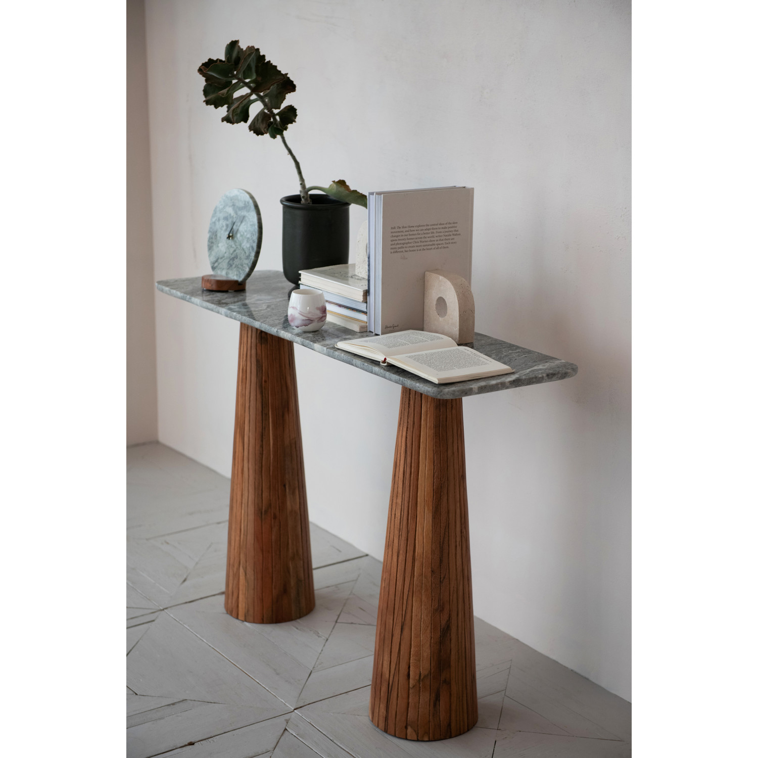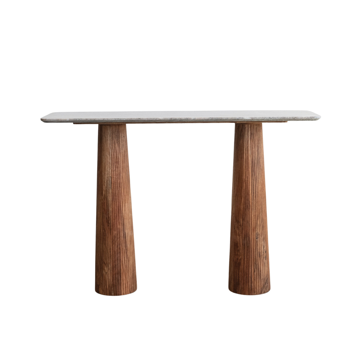 Marble Console Table w/ Carved Tapered Acacia Wood Legs, KD, Truck Ship