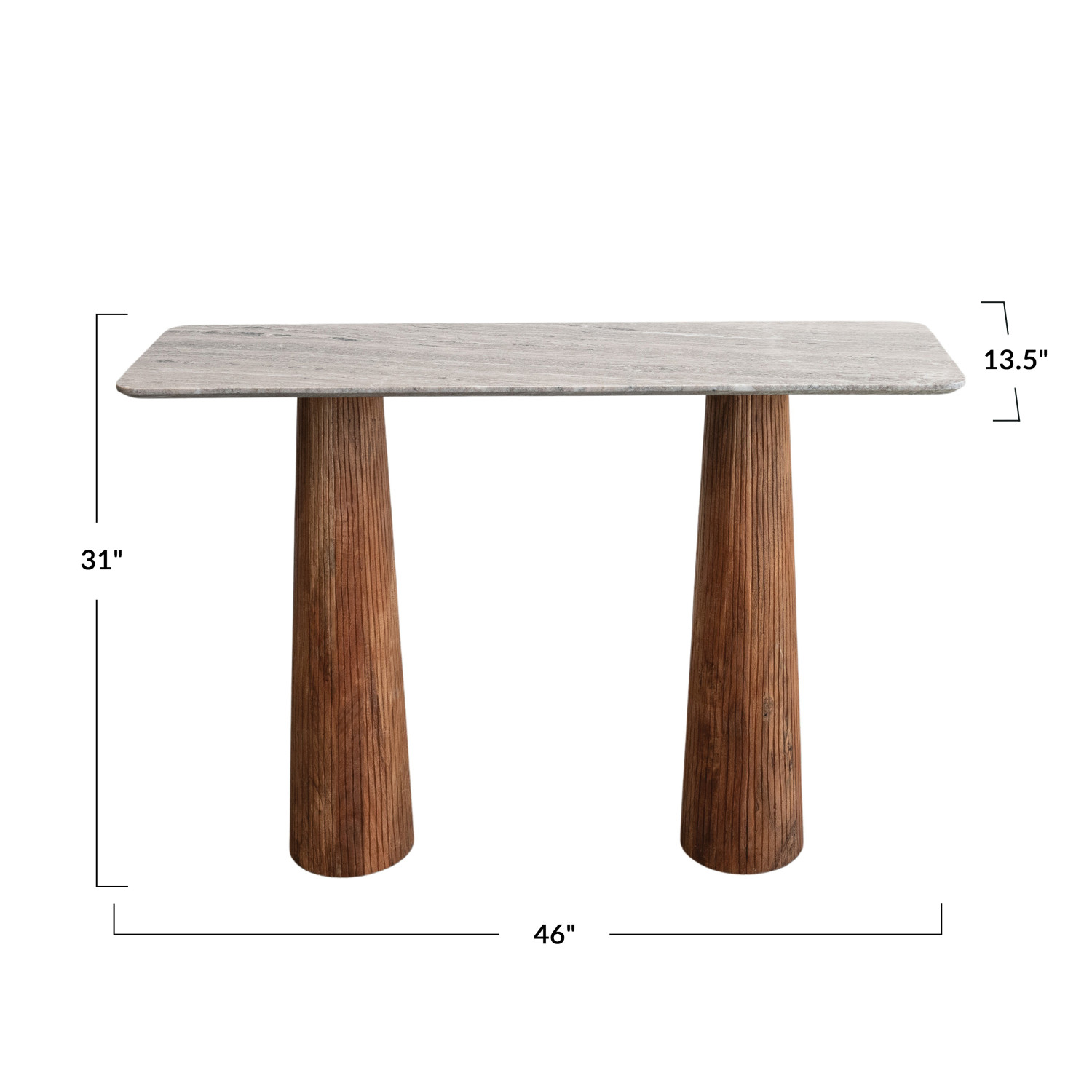 Catalog Name: 46"W x 13-1/2"D x 31"H Marble Console Table w/ Carved Tapered Acacia Wood Legs, Buff Color & Natural, KD, Truck Ship