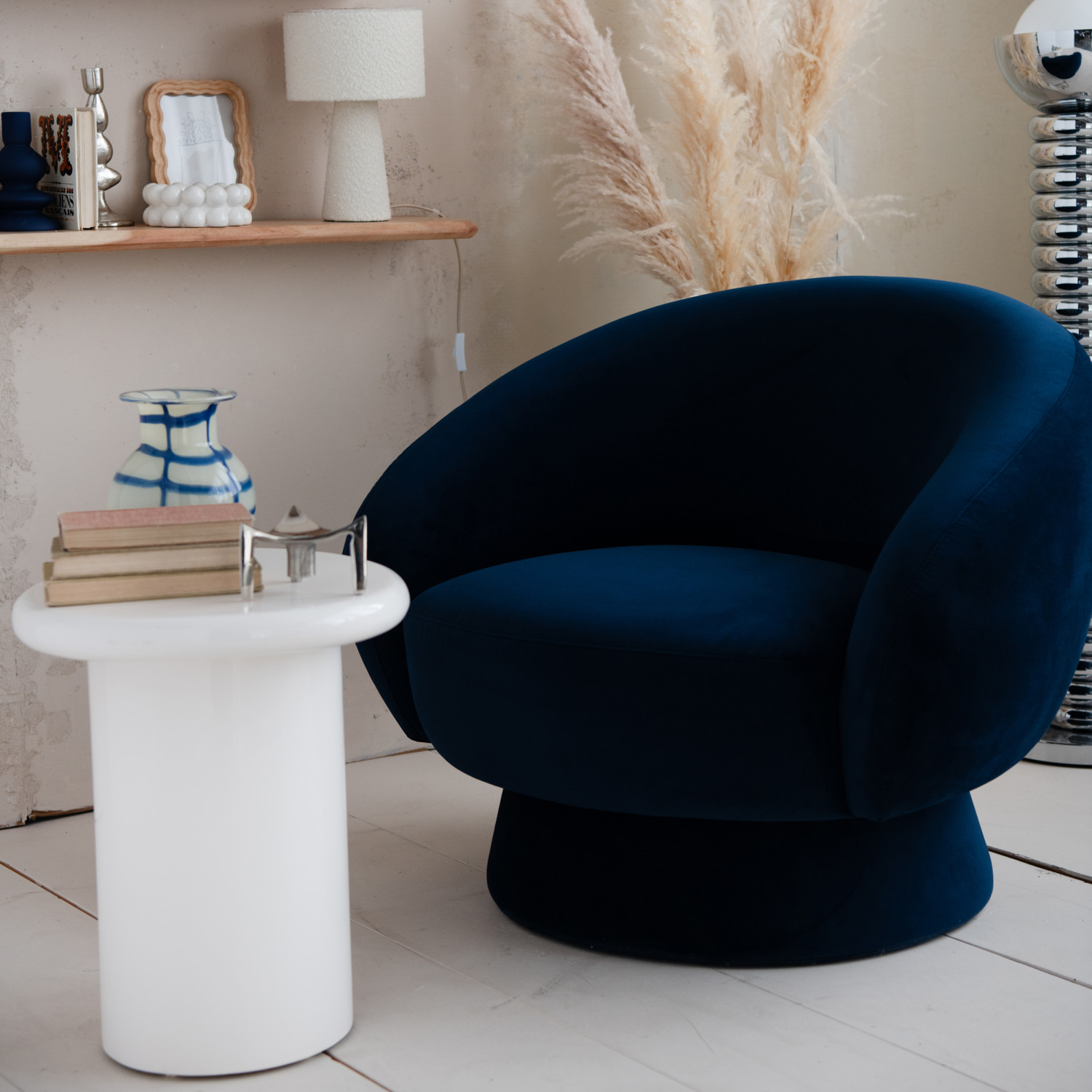 Catalog Name: 19" Round x 19"H Lacquered Concrete Indoor/Outdoor Side Table, White, Truck Ship