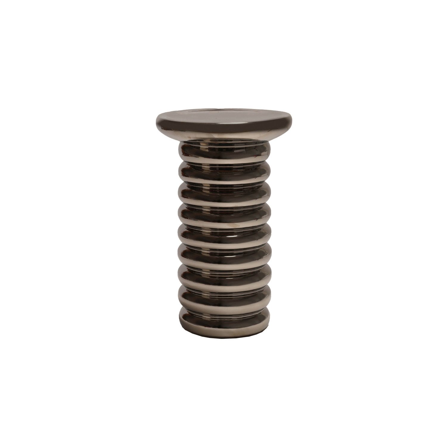 Catalog Name: 12-1/4" Round x 19-3/4"H Stoneware Ribbed Table, Chrome Finish, Truck Ship