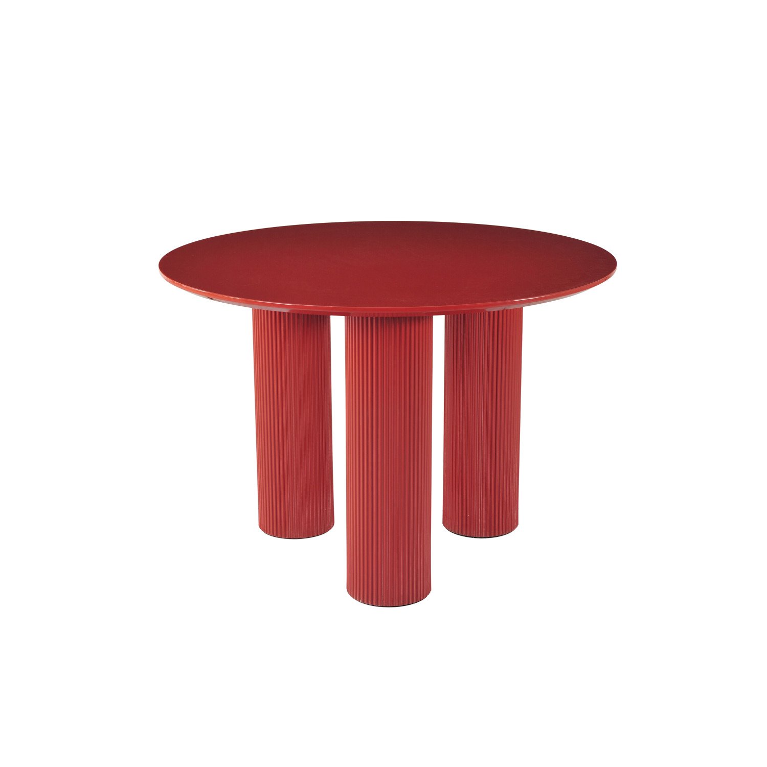 Catalog Name: 43-1/4" Round x 29-1/2"H MDF Lacquered Table w/ Ribbed Legs, Clay Color, KD, Truck Ship