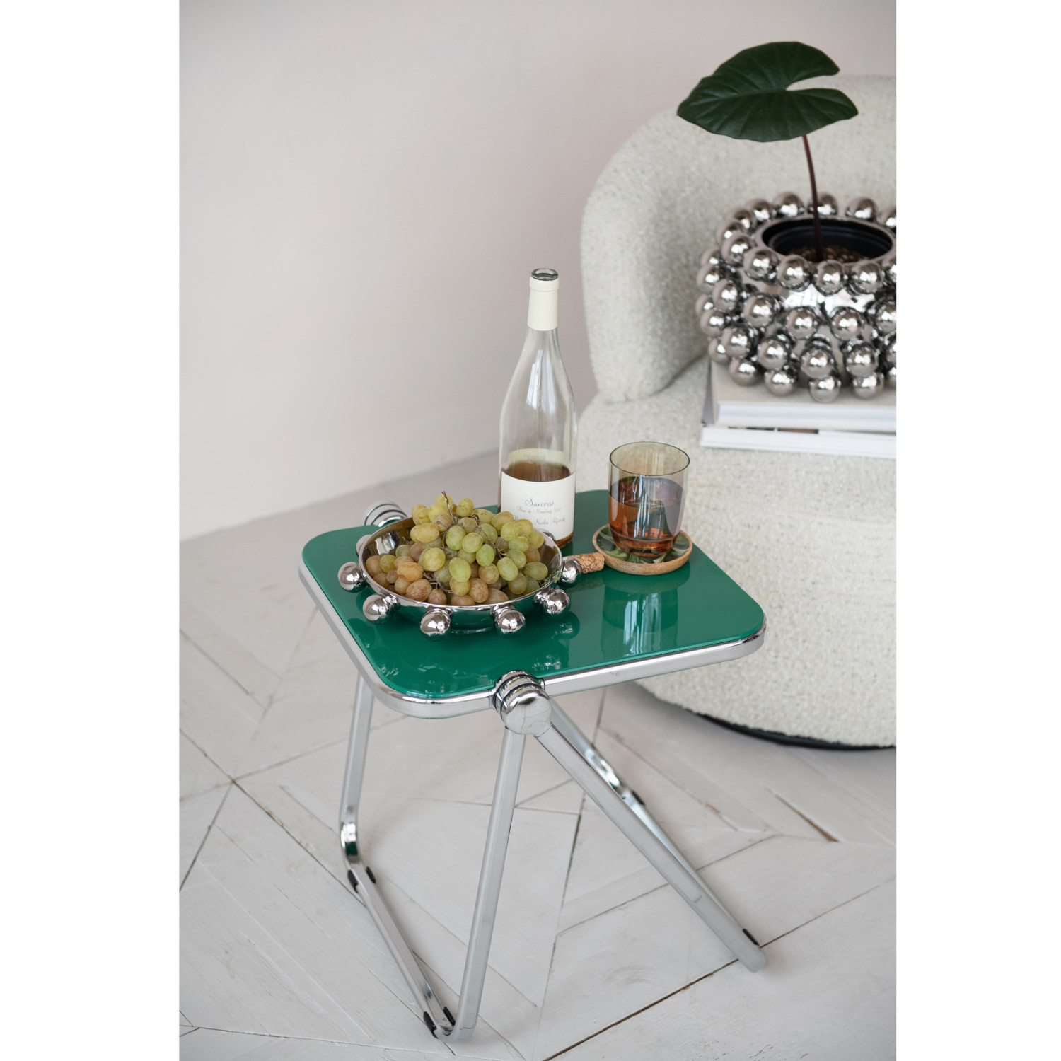 Metal & Plastic Folding Tray Table, Silver Finish & Green